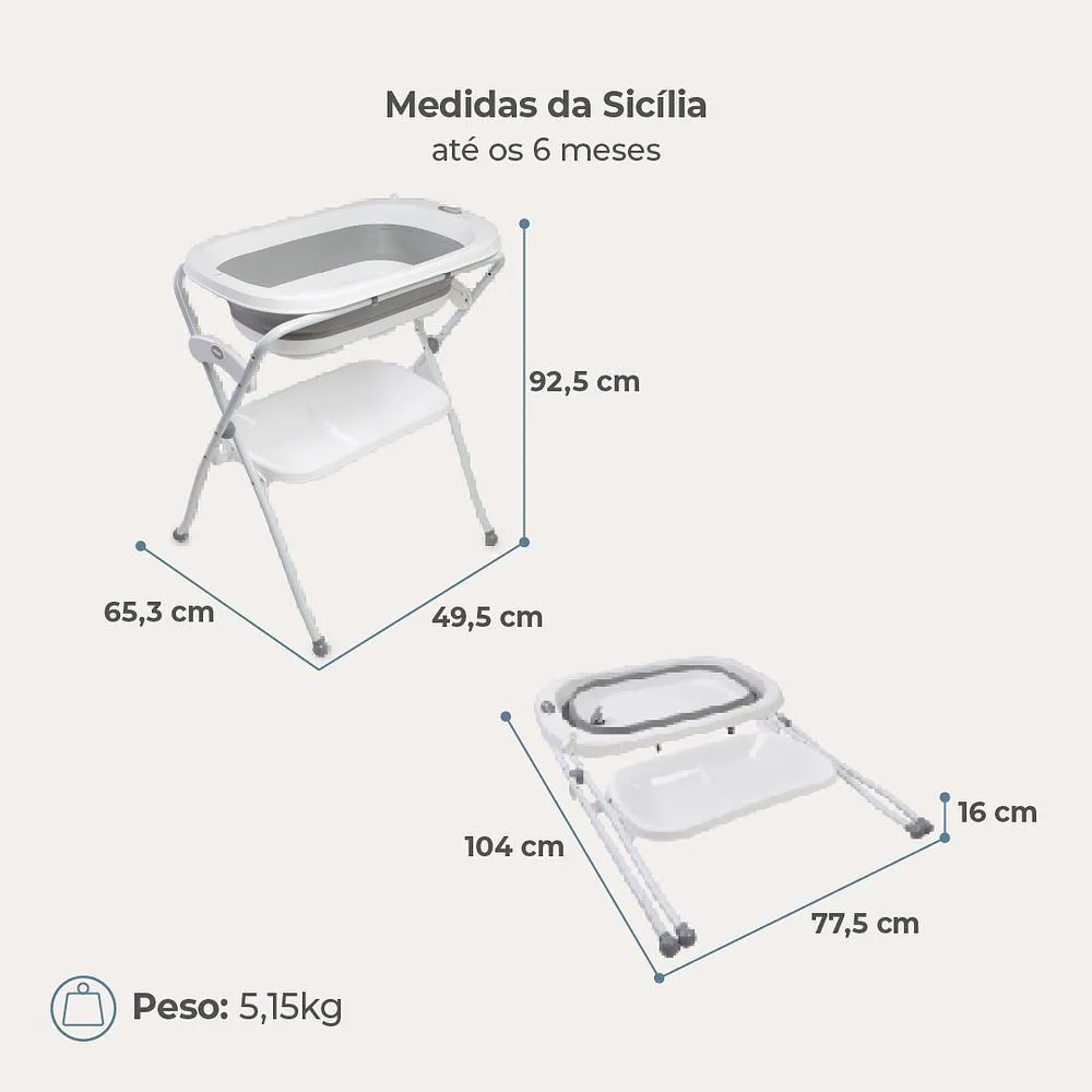 Banheira de Bebê com Suporte Sicília Duo Até 35 Kg Branco e Cinza - Infanti