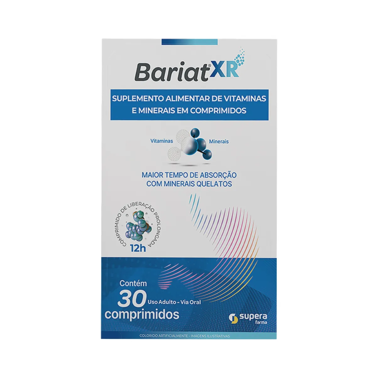 O Bariat XR é um suplemento completo indicado para pacientes bariátricos, na dose diária recomendada, fornece todos os micronutrientes necessários para manutenção da saúde, dentro dos limites diários de vitaminas e minerais estabelecidos pelo Ministério da Saúde. O Bariat XR é o primeiro suplemento alimentar desenvolvido especificamente para o bariátrico, com tecnologia XR (eXtended Release) – Liberação Controlada.