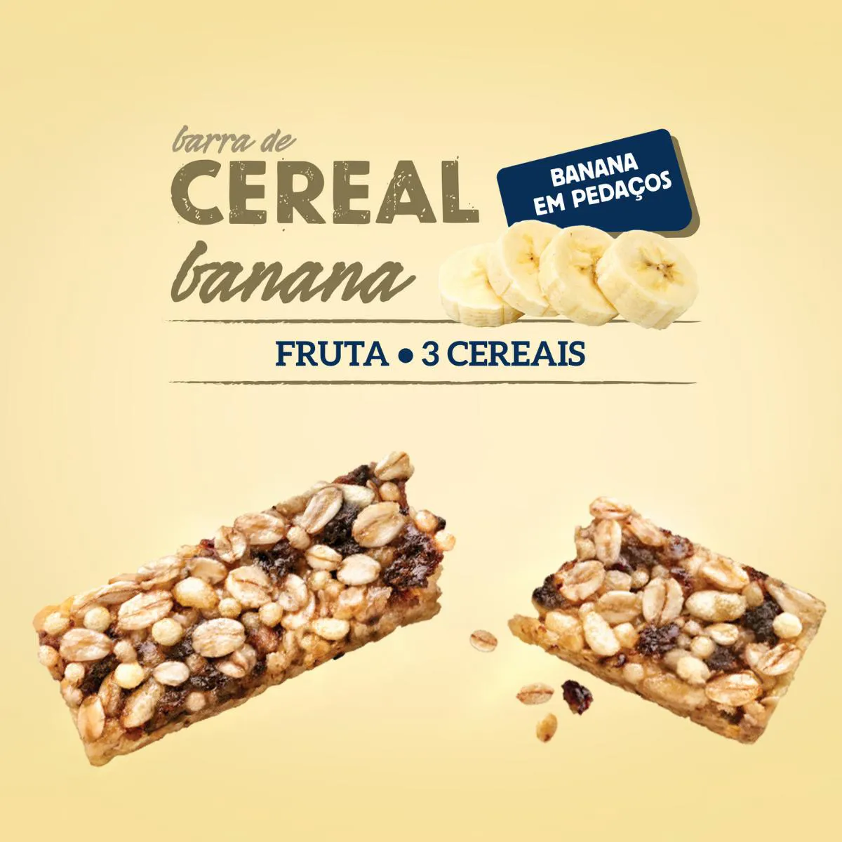 - Barra de cereal com pedaços de banana.