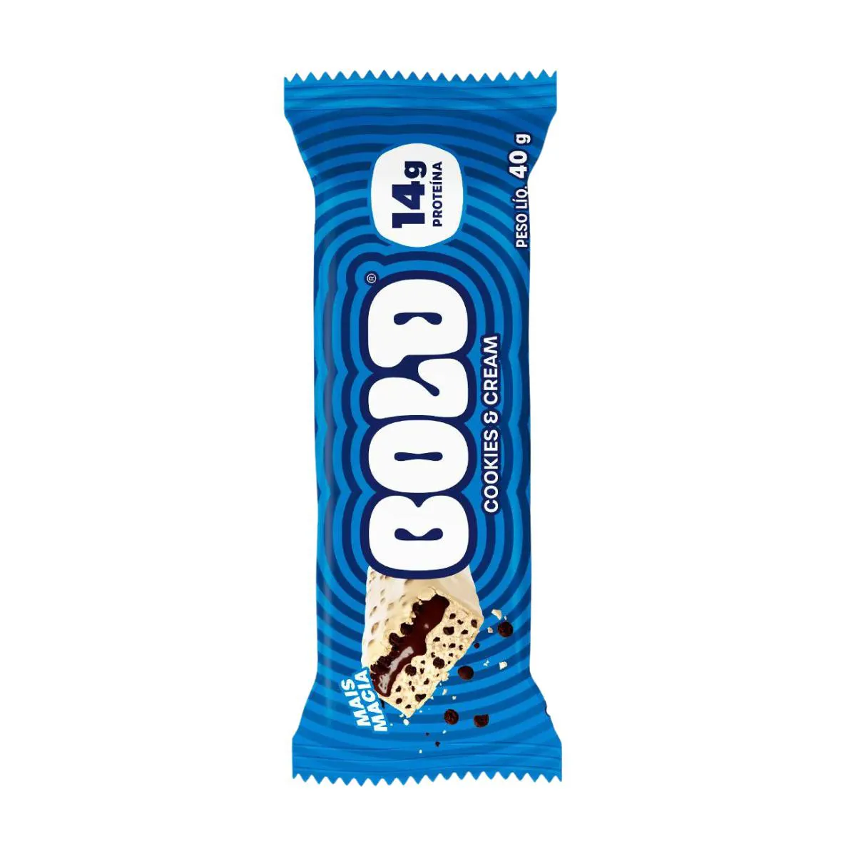 barra de proteína Bold Cookies & Cream 40 gO que é e para que serve a Barra de Proteína Bold?Agora em uma versão mais macia, a Bold é uma barra proteica sabor Cookies & Cream com 14g de proteína, ideal para quem busca uma opção de lanche prático e saboroso para o dia a dia, além de ser zero adição de açúcar.