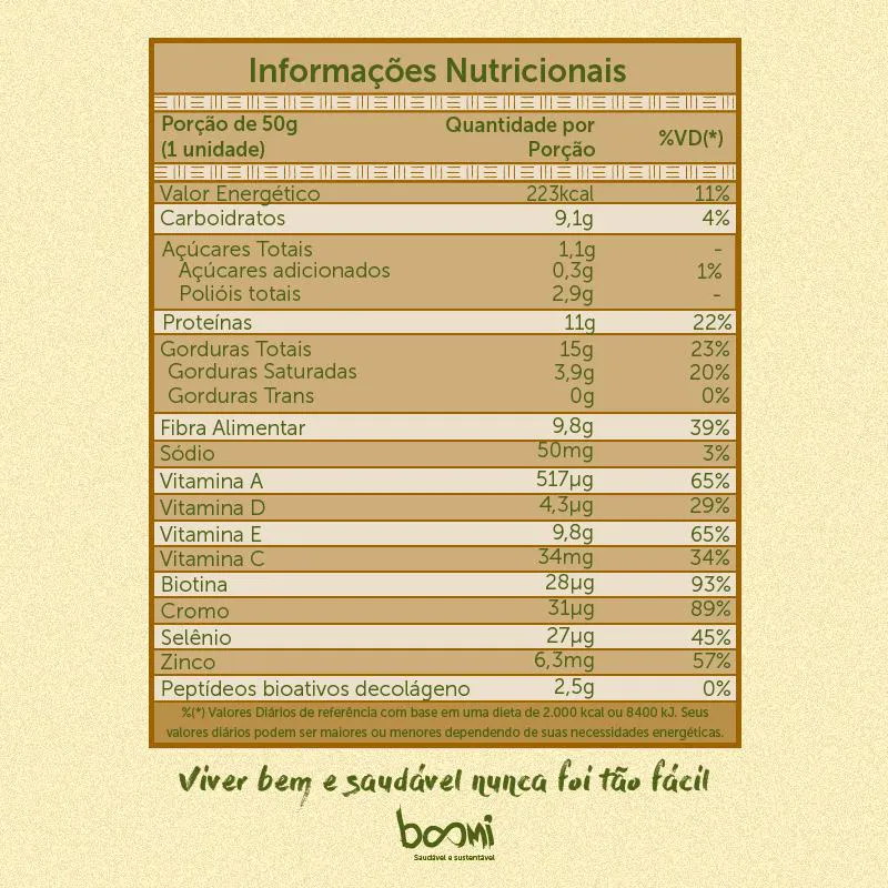 A barra de proteína Collagen Bar Brownie de chocolate 50g Nutrify 10 Unidades é muito mais do que uma barrinha proteica, ela oferece 11 g de proteína por porção para complementar sua ingestão diária de forma prática e saborosa.
