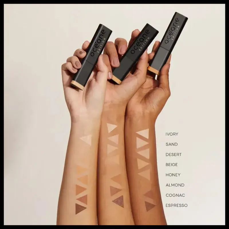 Base cremosa em bastão com acabamento semi-matte. Océane Edition Foundation Stick oferece média cobertura, deixa a pele uniforme e possui longa duração. A Base em Bastão Océane Edition Foundation Stick conta com textura cremosa que uniformiza o tom da pele sem marcar as linhas finas e permite construir camadas para um resultado incrível. A fórmula especial da Foundation Stick Océane contém vitamina e, Ácido Hialurônico, Óleos de Jojoba e Ricino entregando uma experiência confortável para a pele, com textura mais fácil de aplicar e espalhar. Além disso, seu formato triangular torna a aplicação mais precisa, se encaixando perfeitamente em todos os ângulos do rosto. Modo de usar: Passe o bastão diretamente no rosto e espalhe o produto com pincel específico, fazendo movimentos circulares; ou com esponja de maquiagem com batidinhas.