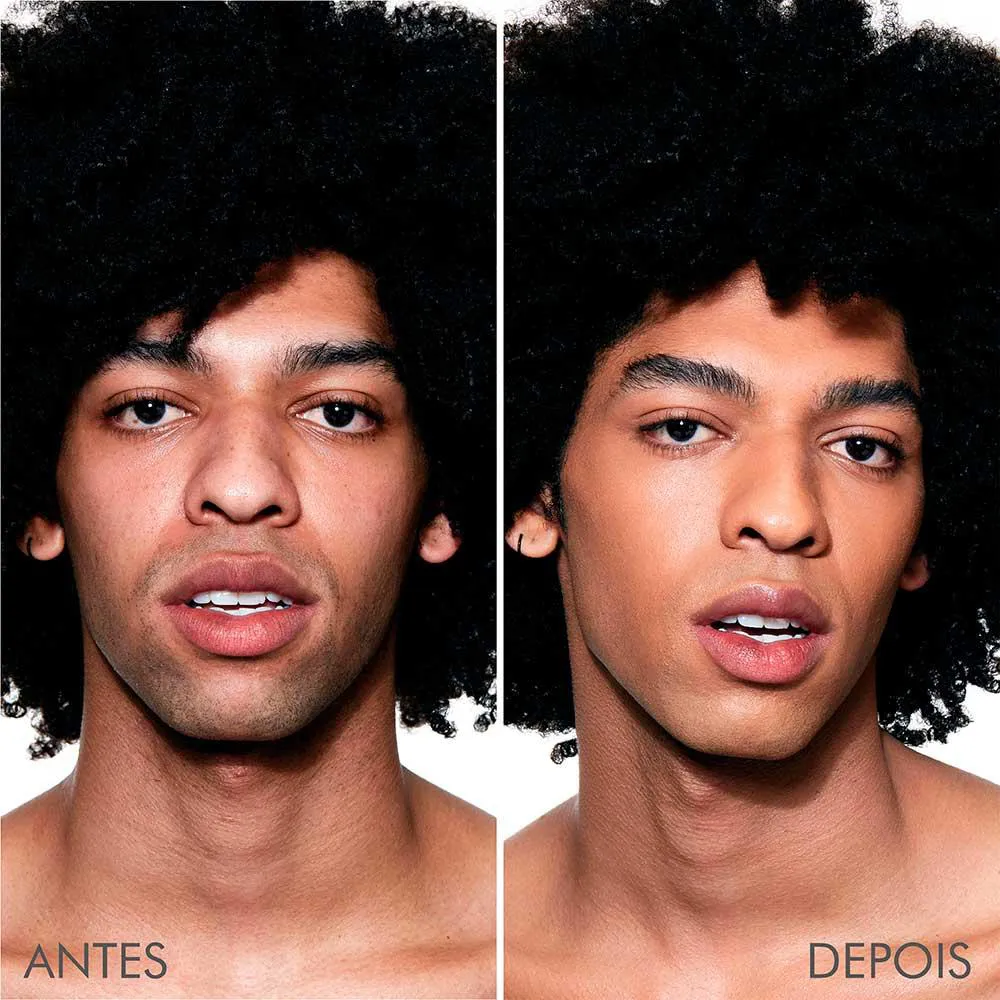 3. Para um acabamento mais natural, finalize dando leves batidas com uma esponja macia. Dica: Para um resultado ainda mais incrível, utilize outros tons do mesmo produto para corrigir, contornar e iluminar. Precauções:
