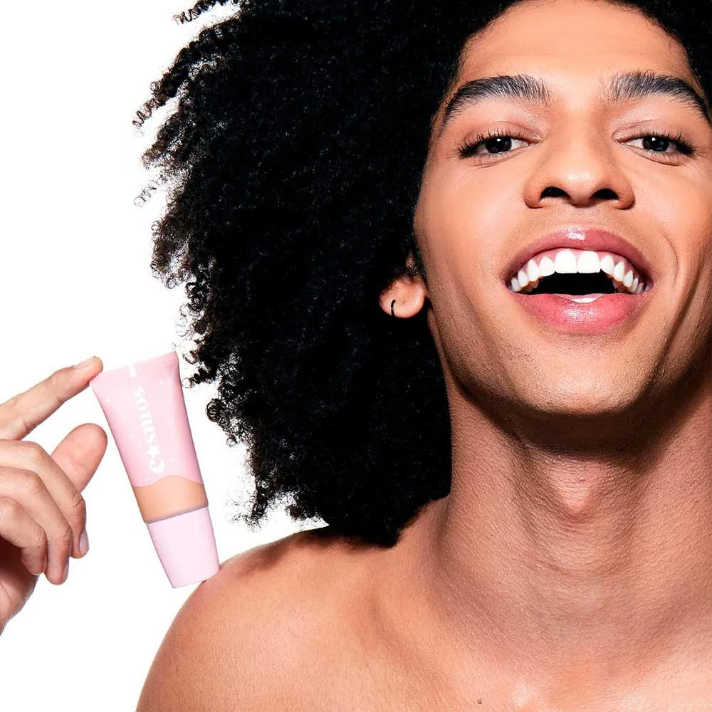 A Base Cosmos By Karen Bachini é ideal para quem busca efeito semi matte, natural e confortável, unindo proteção solar eficaz, inclusive com ativos que ajudam a controlar a oleosidade e disfarce dos poros.