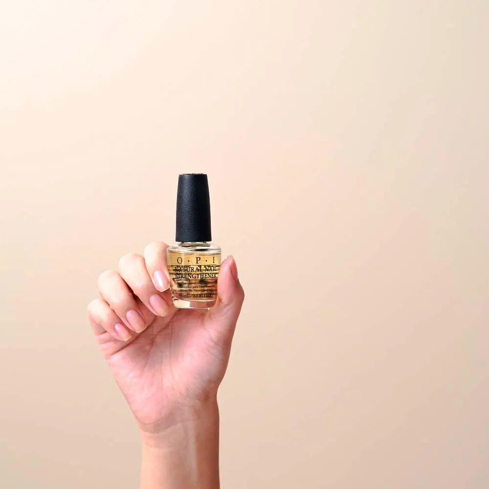 Base para tratmento e fortalecimento, OPI Nail Strengthener cria camadas de proteção para ajudar as unhas a crescerem fortes.