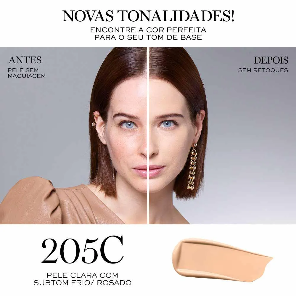 Cobre perfeitamente as imperfeições com cobertura total e ajustável, com acabamento matte natural.
