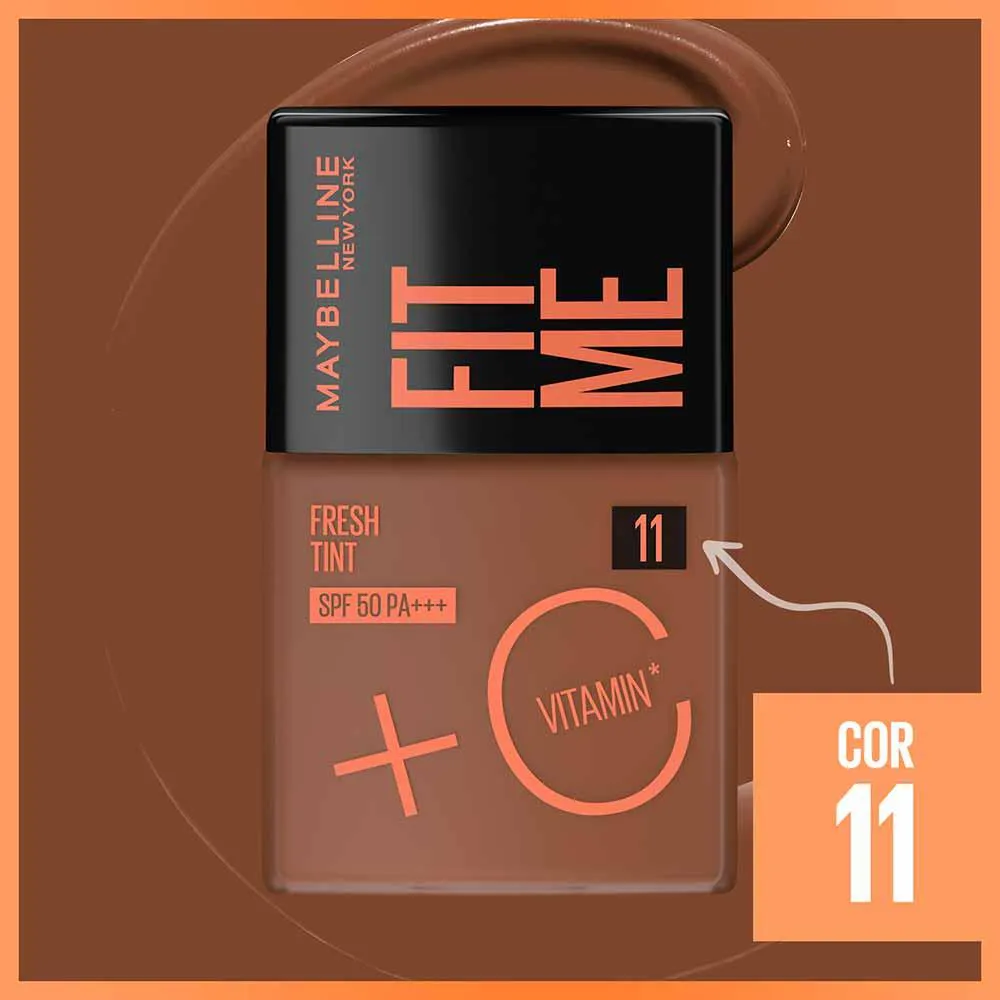 Base Líquida com vitamina c e FPS 50, uniformiza e controla o brilho, Maybelline NY Fit Me Fresh Tint