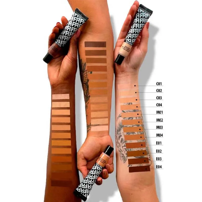Aplique com uma esponja ou pincel para base iniciando no centro do rosto, ou onde desejar maior cobertura e, em seguida, esfume para as laterais do rosto. Para um maior desempenho da base recomendamos que a pele esteja bem hidratada e preparada.