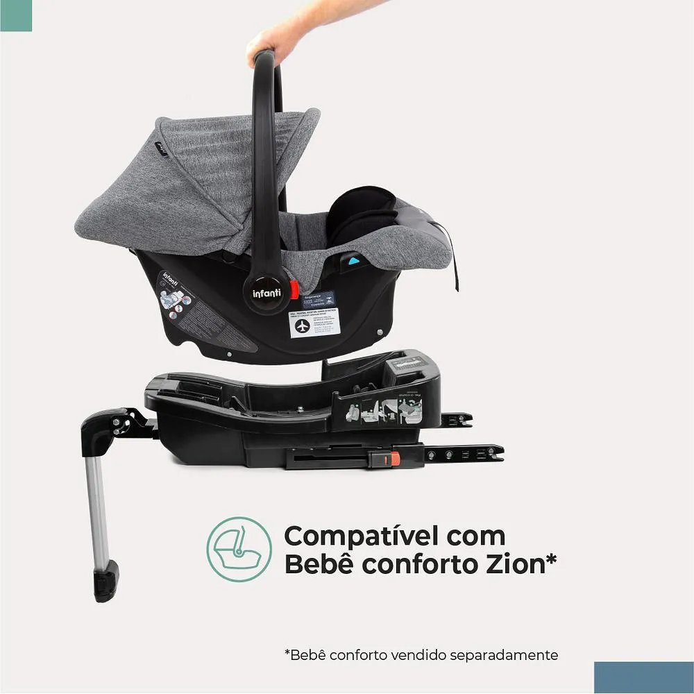 - Compatível com Bebê Conforto Zion, permitindo fácil encaixe e remoção do bebê.
