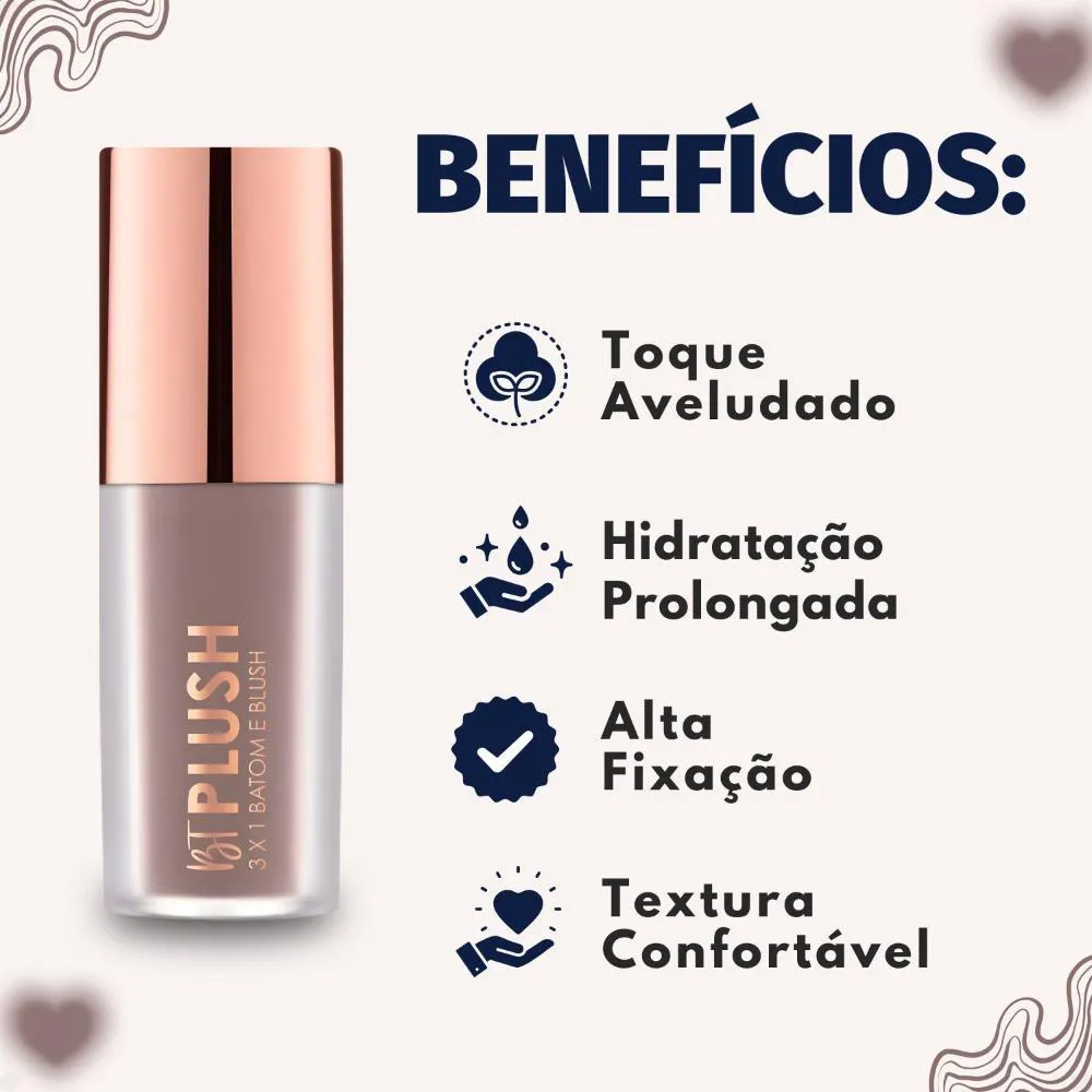Batom, Blush e Sombra Bruna Tavares Bt Plush 3x1 Latte Bps14b