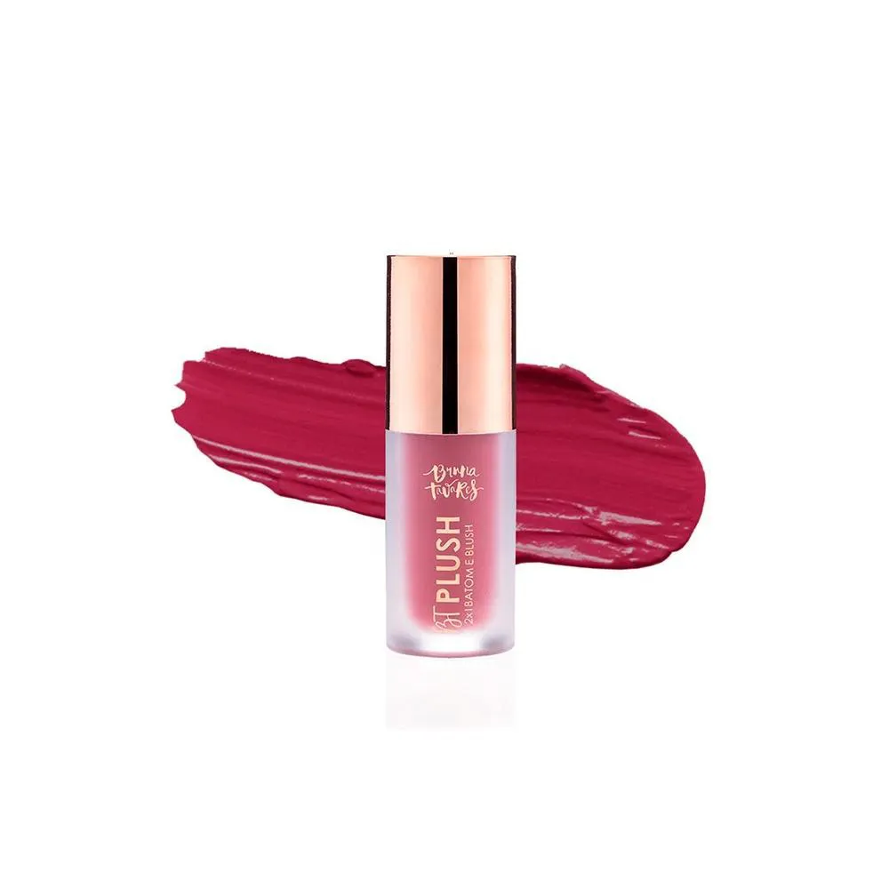 O Batom e Blush Plush 2x1 Bela 6g Bruna Tavares é um produto multifuncional. Possui textura mousse, aveludada, extremamente confortável e acabamento semi matte. Formulado com manteiga de Shorea, um componente muito luxuoso e exótico, extraída da semente de uma árvore originária do Sul da Ásia. A manteiga de Shorea se funde na temperatura da pele, promovendo um sensorial rico e emoliente. É altamente nutritivo, previne o ressecamento e promove a renovação da pele devido a sua grande quantidade de ômega 9.