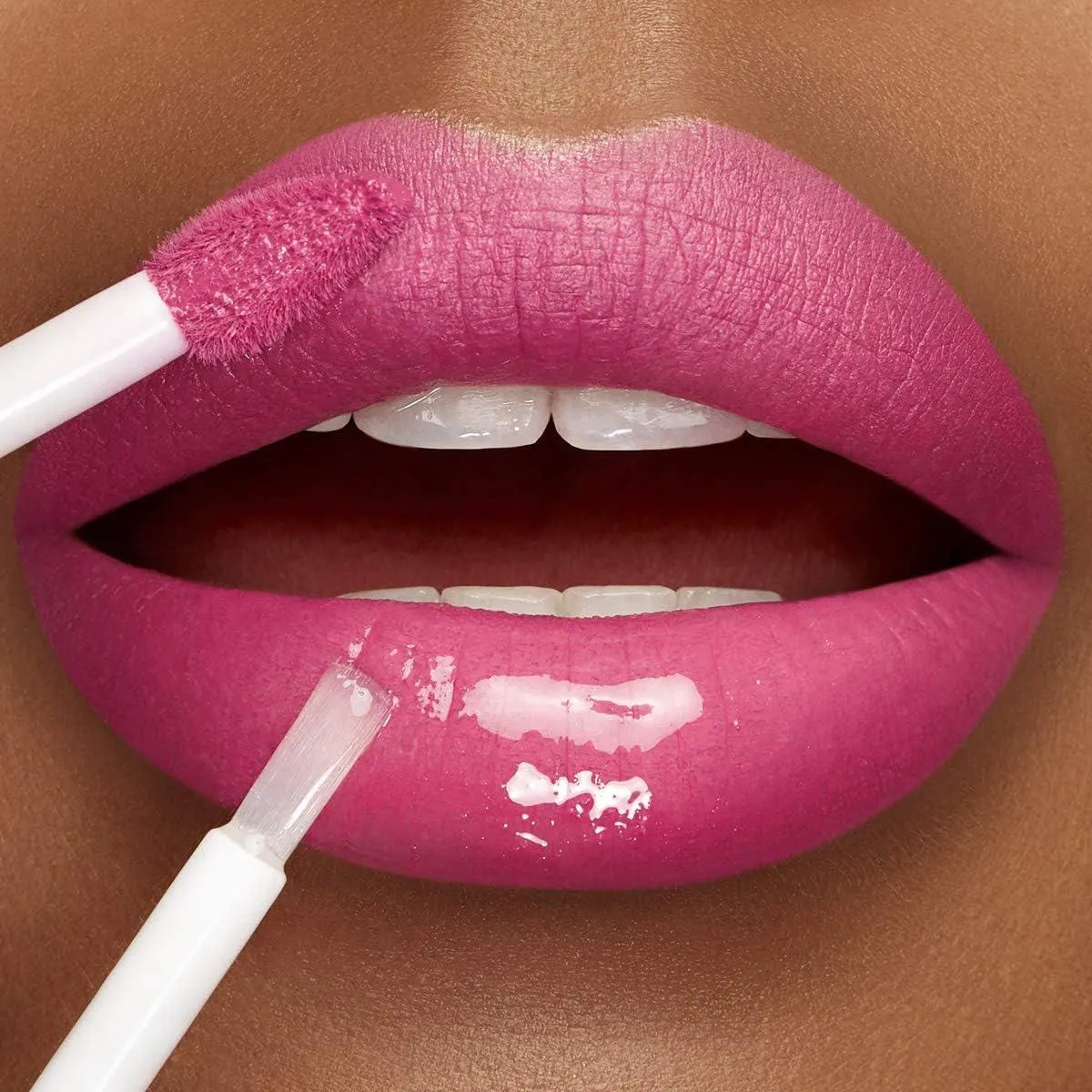 O Unlimited Double Touch une a pigmentação intensa de um batom líquido com o acabamento brilhante de um gloss incolor.