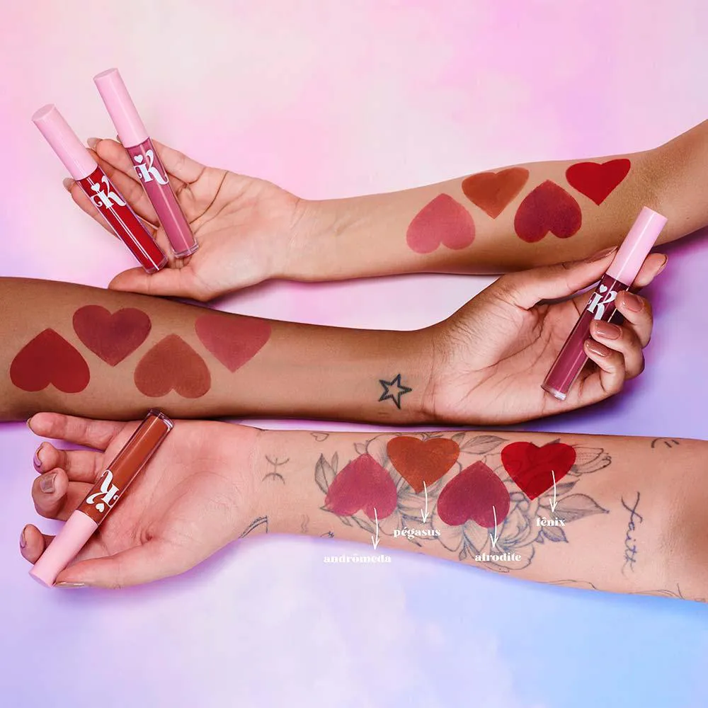 O batom líquido By Karen Bachini apresenta uma fórmula inovadora com textura aveludada, que confere efeito mate e aplicação altamente confortável.