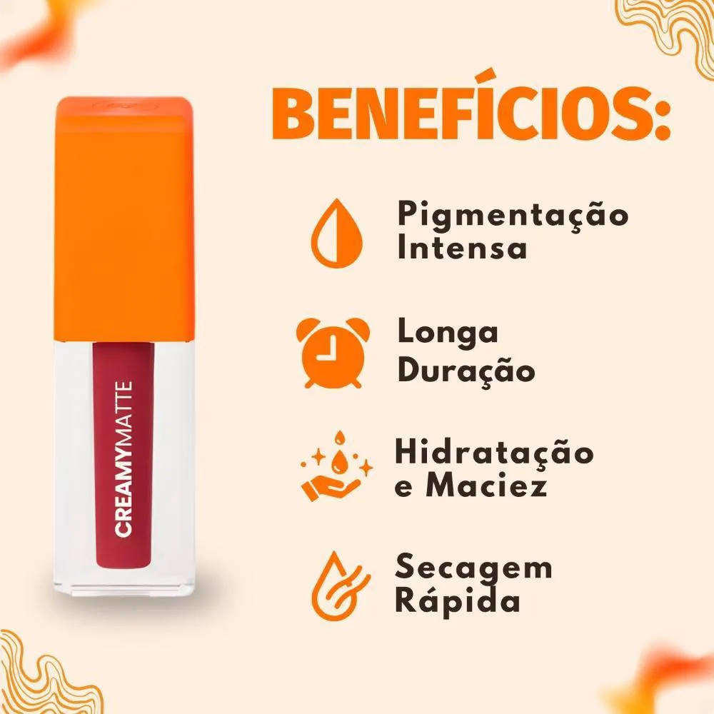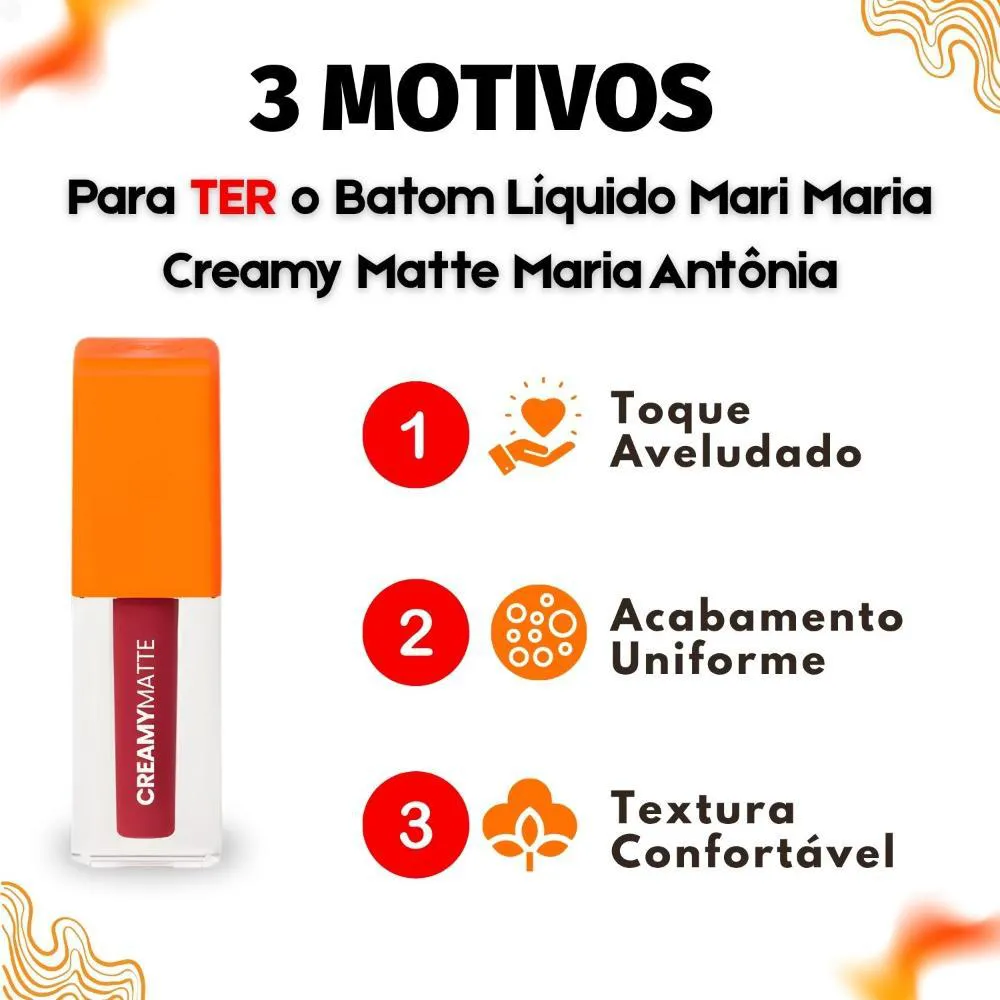 O Batom Líquido Mari Maria Makeup Creamy Matte é a escolha ideal para quem busca uma maquiagem sofisticada e duradoura, com um toque de conforto. Este batom combina alta pigmentação com um acabamento aveludado e confortável, proporcionando lábios vibrantes, macios e sofisticados. A linha oferece 15 cores irresistíveis, incluindo nudes, marrons, rosados, vermelhos e vinhos, perfeitas para qualquer ocasião, garantindo que seus lábios se destaquem com elegância. Ideal para mulheres que desejam realçar sua beleza natural com um produto de alta qualidade e longa duração.Benefícios Principais