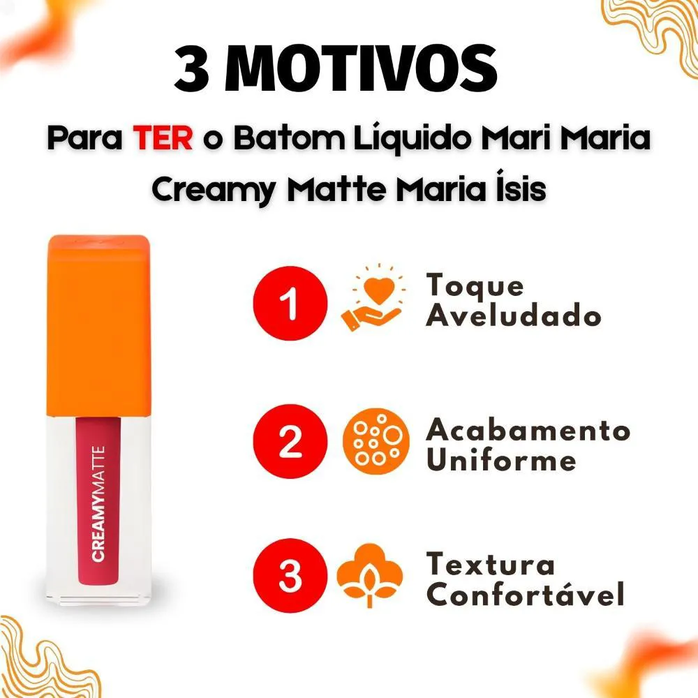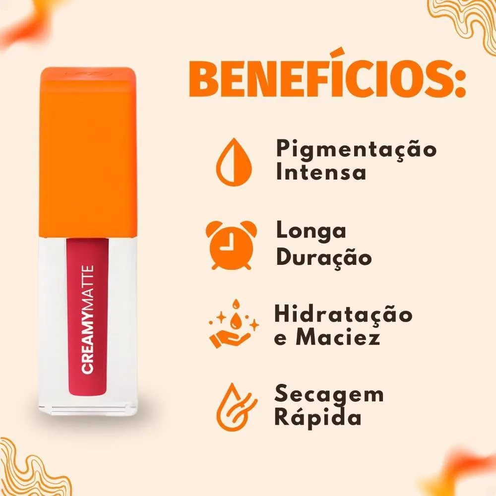 O Batom Líquido Mari Maria Makeup Creamy Matte é a escolha ideal para quem busca uma maquiagem sofisticada e duradoura, com um toque de conforto. Este batom combina alta pigmentação com um acabamento aveludado e confortável, proporcionando lábios vibrantes, macios e sofisticados. A linha oferece 15 cores irresistíveis, incluindo nudes, marrons, rosados, vermelhos e vinhos, perfeitas para qualquer ocasião, garantindo que seus lábios se destaquem com elegância. Ideal para mulheres que desejam realçar sua beleza natural com um produto de alta qualidade e longa duração.Benefícios Principais