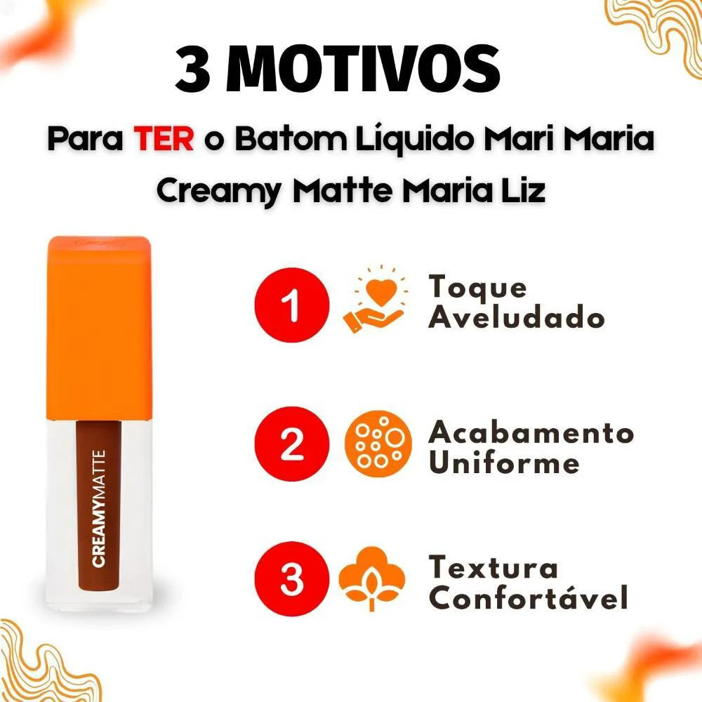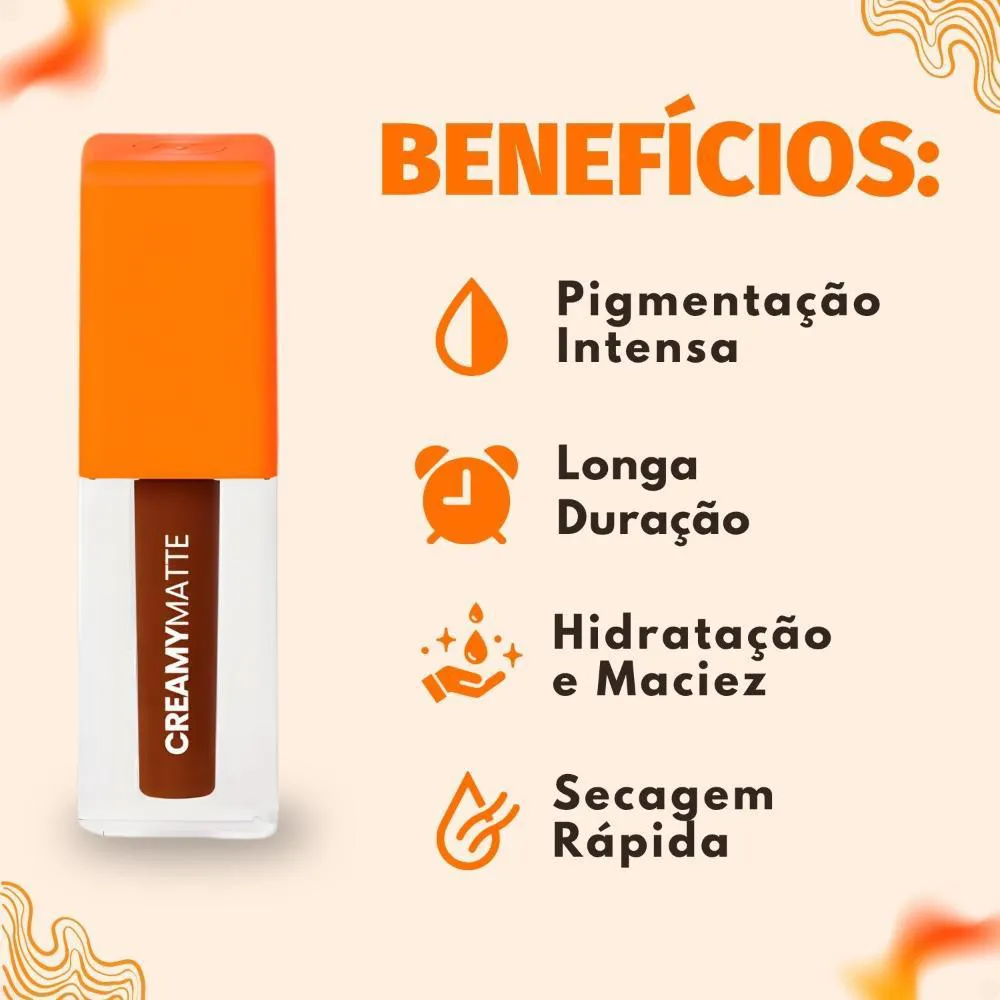 O Batom Líquido Mari Maria Makeup Creamy Matte é a escolha ideal para quem busca uma maquiagem sofisticada e duradoura, com um toque de conforto. Este batom combina alta pigmentação com um acabamento aveludado e confortável, proporcionando lábios vibrantes, macios e sofisticados. A linha oferece 15 cores irresistíveis, incluindo nudes, marrons, rosados, vermelhos e vinhos, perfeitas para qualquer ocasião, garantindo que seus lábios se destaquem com elegância. Ideal para mulheres que desejam realçar sua beleza natural com um produto de alta qualidade e longa duração.Benefícios Principais