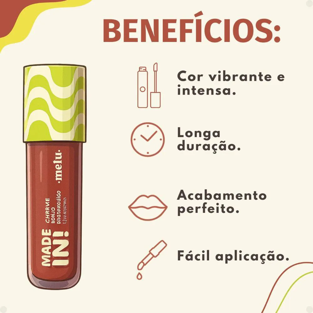 Ideal para complementar qualquer look, do casual ao mais elaborado, o Batom Líquido Melu Made In! Charme Do Rio Ipanema RR-L6202-8 oferece uma experiência única, combinando a qualidade MELU com a inspiração carioca, garantindo lábios deslumbrantes e cheios de vida.Benefícios Principais