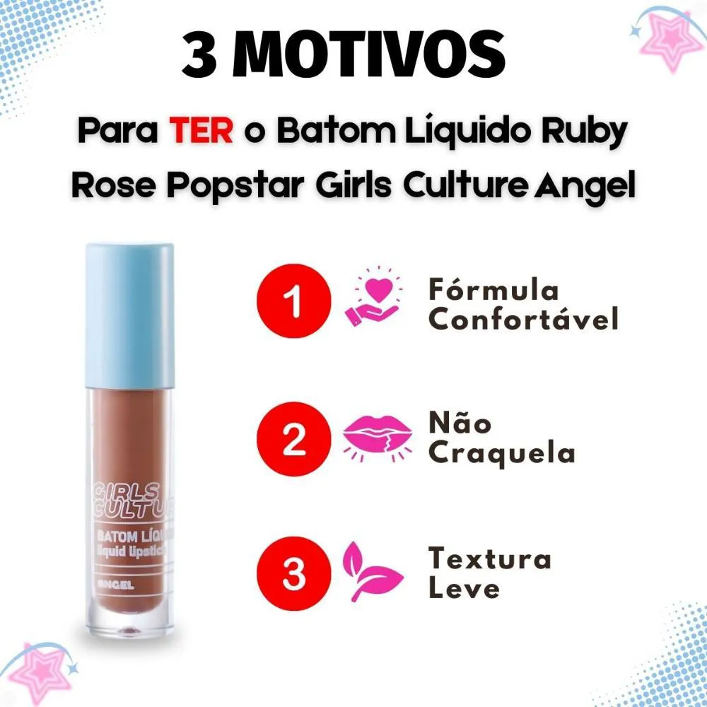 Batom Líquido Ruby Rose Popstar Girls Culture Angel Hb-L6204-1