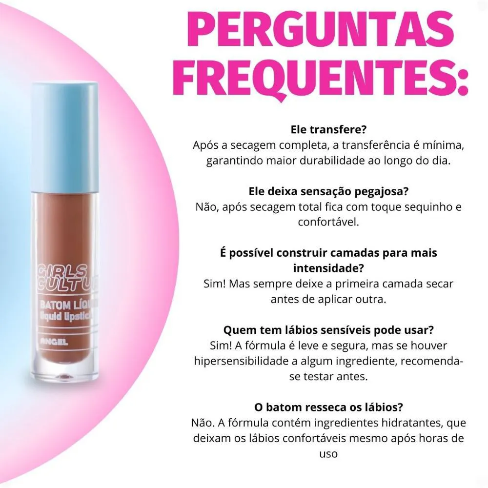 Descubra o Batom Líquido Ruby Rose Popstar Girls Culture, o item perfeito para quem busca um toque de cor vibrante e estilo em sua maquiagem. Desenvolvido pela renomada marca RUBY ROSE, este batom líquido oferece uma experiência única, ideal para expressar sua personalidade e paixão pela cultura pop. Com uma fórmula pensada para proporcionar conforto e beleza, ele se torna um aliado indispensável para looks marcantes e cheios de atitude, permitindo que você brilhe em qualquer ocasião. Ideal para jovens e adultos que amam maquiagem e querem se destacar com um visual moderno e divertido.Benefícios Principais