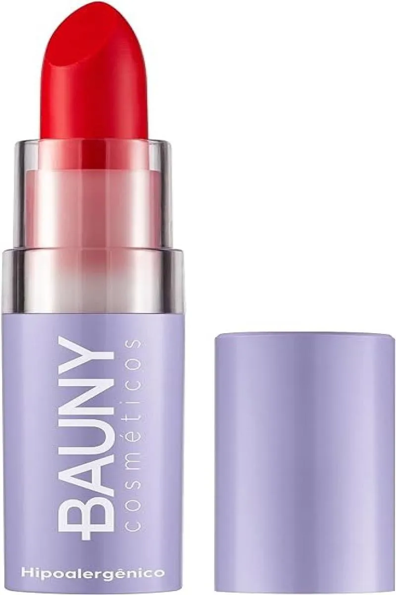 Versáteis, os batons bala Bauny possuem óleo de rícino em sua formulação, o que confere alto poder de hidratação aos lábios, sem contar a sua fixação, conforto e cobertura ímpar.