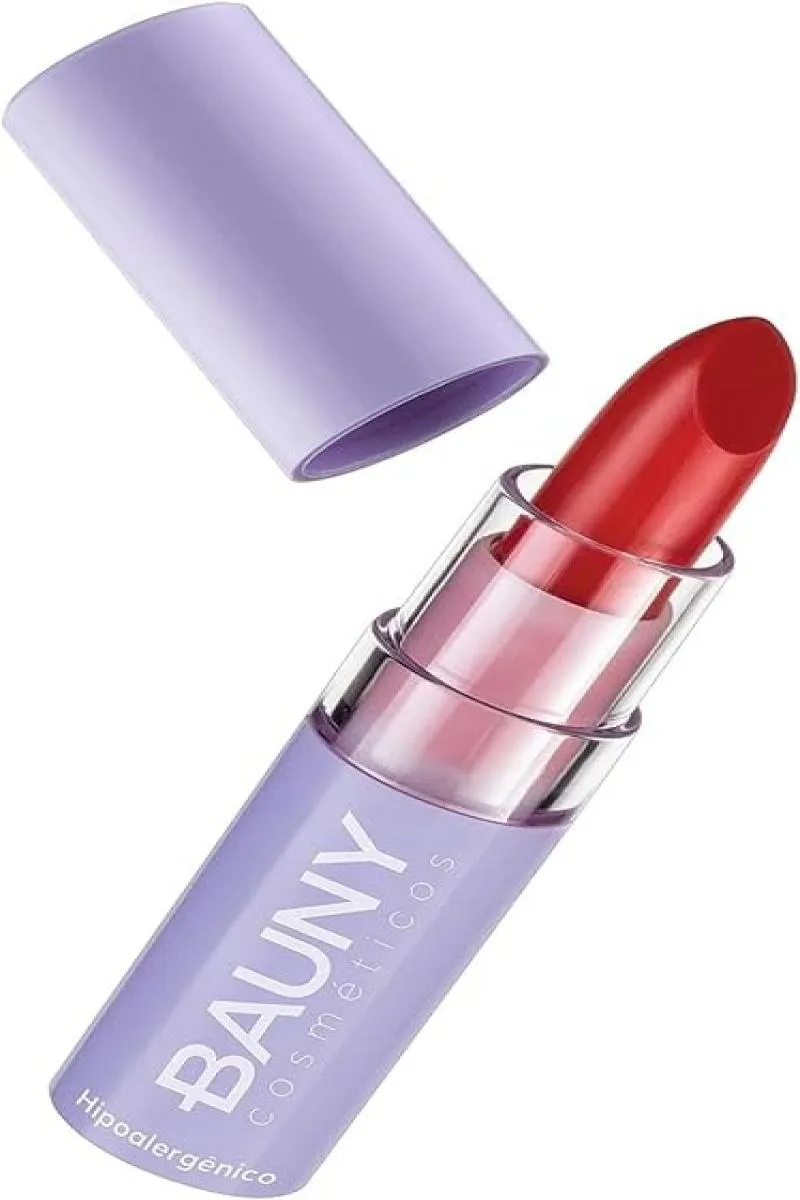 Versáteis, os batons bala Bauny possuem óleo de rícino em sua formulação, o que confere alto poder de hidratação aos lábios, sem contar a sua fixação, conforto e cobertura ímpar.