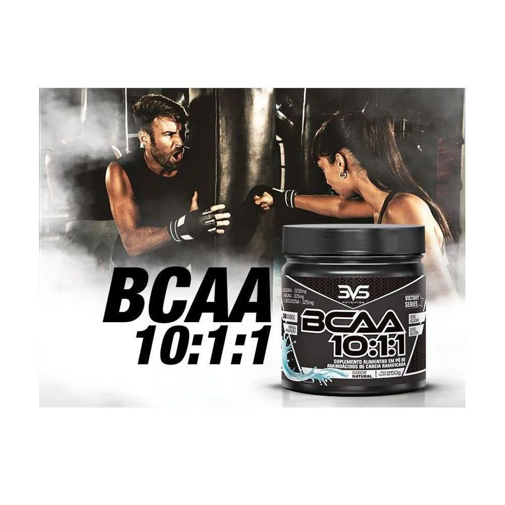 BCAA 10:1:1 (250g) - 3VS BCAA 10:1:1 da 3VS Nutrition é um suplemento alimentar com fórmula exclusiva dos BCAAe#039;s (aminoácidos de cadeia ramificada): L-Isoleucina, L-Leucina e L-Valina. Esses aminoácidos possuem rápida absorção e por não serem produzidos pelo organismo são importantes na realização das sínteses proteicas. BCAA 10:1:1 conta com um incrível sabor, sua mistura é instantânea e pode ser consumida em qualquer lugar e em qualquer horário. Cada porção fornece 10 partes de L-Leucina, para 1 de L-Valina e 1 de L-Isoleucina. Não contém açúcar ou glúten. BENEFÍCIOS: * Rápida absorção;* Ganho de energia;* Síntese proteica;* Contém Maxy Waise;* Proteção contra o catabolismo;* Recuperação muscular.