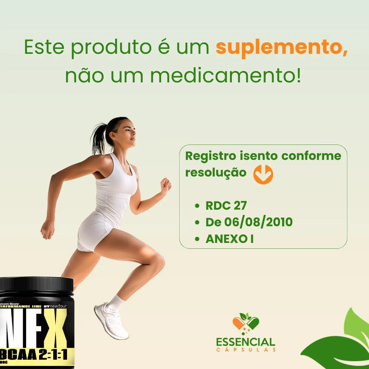 BEM VINDO(A) À ESSENCIAL CÁPSULAS Aqui, acreditamos que cuidar da saúde pode (e deve) ser algo natural, leve e diário. PRODUTO: - bcaa MARCA: - NEW FOUR BENEFÍCIOS: ● Combinação muito utilizada em rotinas de treino ● Pode ser incluído antes ou após atividades físicas ● Ideal para quem mantém uma rotina ativa e intensa SUGESTÃO DE CONSUMO (PELO FABRICANTE): - 5g (1 dosador) - Diluir em 200ml de água IMPORTANTE SABER: - Este produto é um suplemento alimentar natural. - Não é medicamento e não substitui uma alimentação equilibrada nem o acompanhamento de um profissional da saúde. - Como um produto natural, seus benefícios podem ser vistos a partir de alguns dias do uso. - Os suplementos são destinados a pessoas saudáveis. Sua finalidade é fornecer nutrientes, substâncias bioativas, enzimas ou probióticos em complemento à alimentação. COMPOSIÇÃO: - L-Leucina, L-Isoleucina, L-Valina NÃO CONTÉM GLÚTEN CONTRAINDICAÇÃO: - O uso não é recomendado para gestantes, lactantes e crianças. - Em caso de uso contínuo de medicamentos ou condições específicas de saúde, busque a orientação de um profissional da saúde. QUALIDADE: - Sabemos que o mercado de suplementos é competitivo, com opções para todos os públicos e faixas de preço. Na nossa loja, priorizamos a qualidade em cada detalhe. Por isso, escolhemos trabalhar apenas com fábricas que utilizam matérias-primas de excelência e seguem rigorosos padrões de produção. ENVIAMOS RAPIDINHO: - Seu pedido é preparado com todo cuidado e postado em até 24 horas úteis após a confirmação da compra. (Na maioria das vezes, enviamos bem antes disso)! FALE CONOSCO: Tem dúvidas ou quer conversar sobre o produto? Nosso atendimento é humanizado e está sempre pronto para te ouvir com muita atenção!