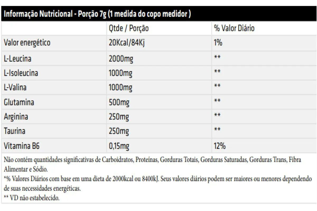 - Combina BCAA's, L-Glutamina, L-Arginina e L-Taurina.