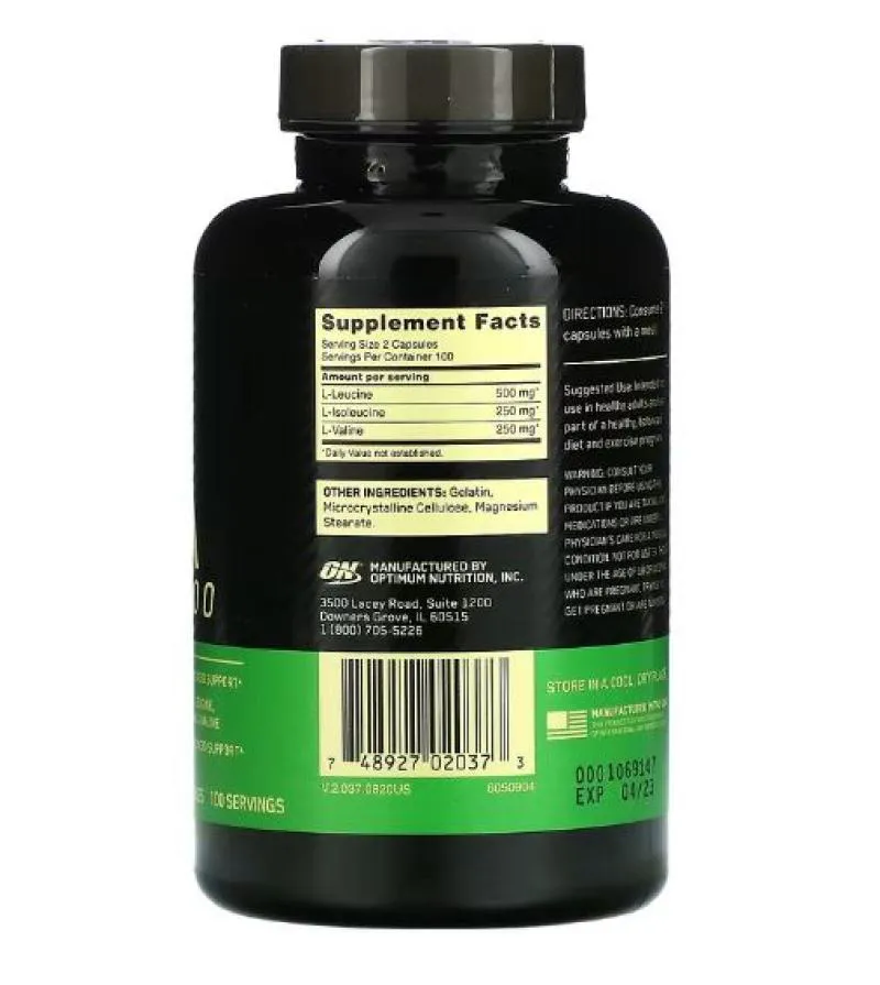 Bcaa Optimum Nutrition 200 cápsulas 1000mg