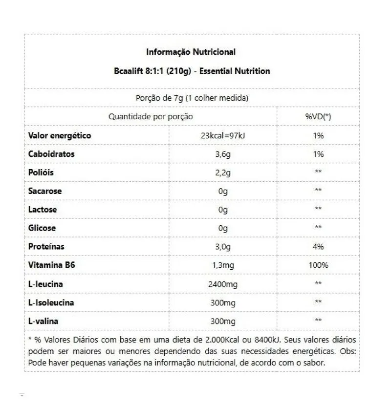 bcaa Lift 8:1:1 é um suplemento em pó à base de aminoácidos essenciais e vitamina B6 na sua forma ativa. Nosso organismo necessita desses aminoácidos para a síntese de proteínas que formam nossas estruturas musculares. Como não são produzidos por nosso corpo, precisam ser ingeridos por meio da alimentação ou suplementação.