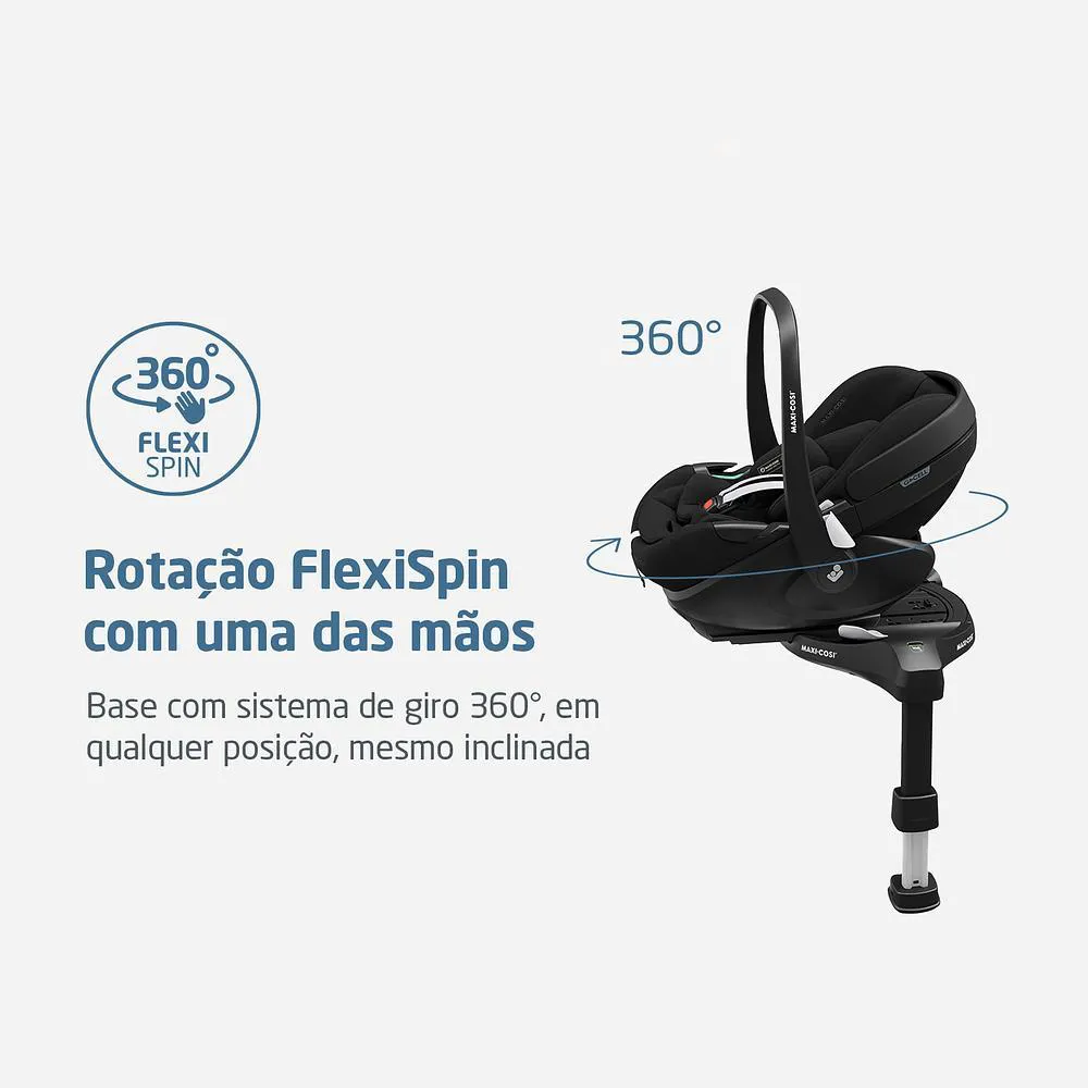 bebê conforto Pebble 360 Pro - Maxi-Cosi BRBRO Bebê Conforto Pebble 360 Pro da Maxi-Cosi é muito mais do que um simples assento de carro, é o melhor amigo do seu bebê desde o primeiro dia. Com uma posição totalmente reclinável, proporciona conforto excepcional para a hora do soninho, seja em viagens de carro ou passeios de carrinho. Equipado com tecnologia SlideTech® e rotação de 360°, sua instalação é fácil e rápida quando combinado com a base FamilyFix 360 Pro. A segurança e o conforto do seu bebê são prioridades absolutas com o Pebble 360 Pro.BRBRCaracterísticas:BRBR•Segurança: Desde o início, o Pebble 360 Pro atende aos mais altos padrões de segurança, com certificação i-Size e proteção de Impacto Lateral G-CELL para uma proteção superior em casos de colisões laterais. Certificado pela TÜV para uso em aviões, garantindo segurança nas viagens de férias.BR•Facilidade de Uso: A base FamilyFix 360 Pro torna a rotatividade e deslizamento do bebê fácil e sem esforço, enquanto os conectores ISOFIX e a perna de apoio garantem uma instalação segura no carro. O assento pode ser usado sem a base, fixado com segurança no cinto de segurança do carro e facilmente encaixado em um carrinho de bebê.BR•Faixa Etária: Adequado desde o nascimento até 18 meses (40 cm a 87 cm), e também compatível com bebês prematuros para garantir viagens seguras desde o primeiro dia. Após esse período, migre para o Pearl 360 Pro, compatível com a mesma base, para continuar proporcionando conforto até os 4 anos de idade.BR•Conforto: O Pebble 360 Pro oferece uma posição única totalmente reclinável para máximo conforto durante as viagens, com tecnologia ClimaFlow para manter a temperatura ideal, espuma respirável e painéis de ventilação para melhor circulação do ar. Seu apoio de cabeça ajustável garante uma posição confortável e segura para a respiração do seu bebê em movimento.BRBRRecline em segurança, conforto máximo no carro e no carrinho com o Bebê Conforto Pebble 360 Pro da Maxi-Cosi. Um companheiro confiável que acompanha seu bebê em todas as jornadas.