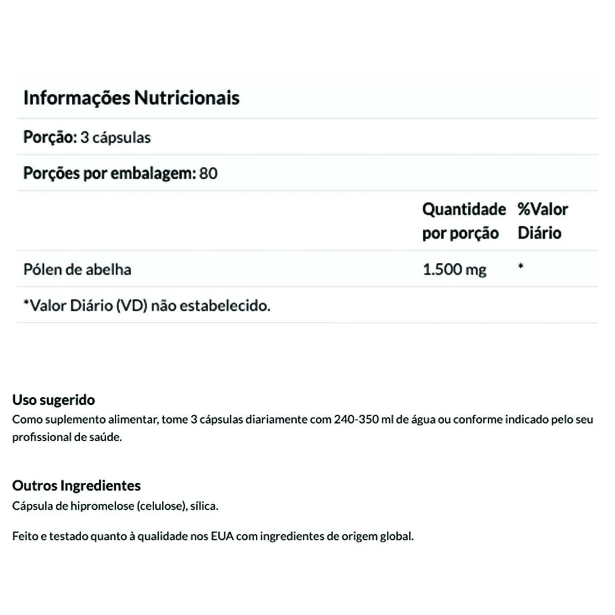 Bee Pollen Pólen de Abelha 500Mg 240 Cápsulas Nutricost