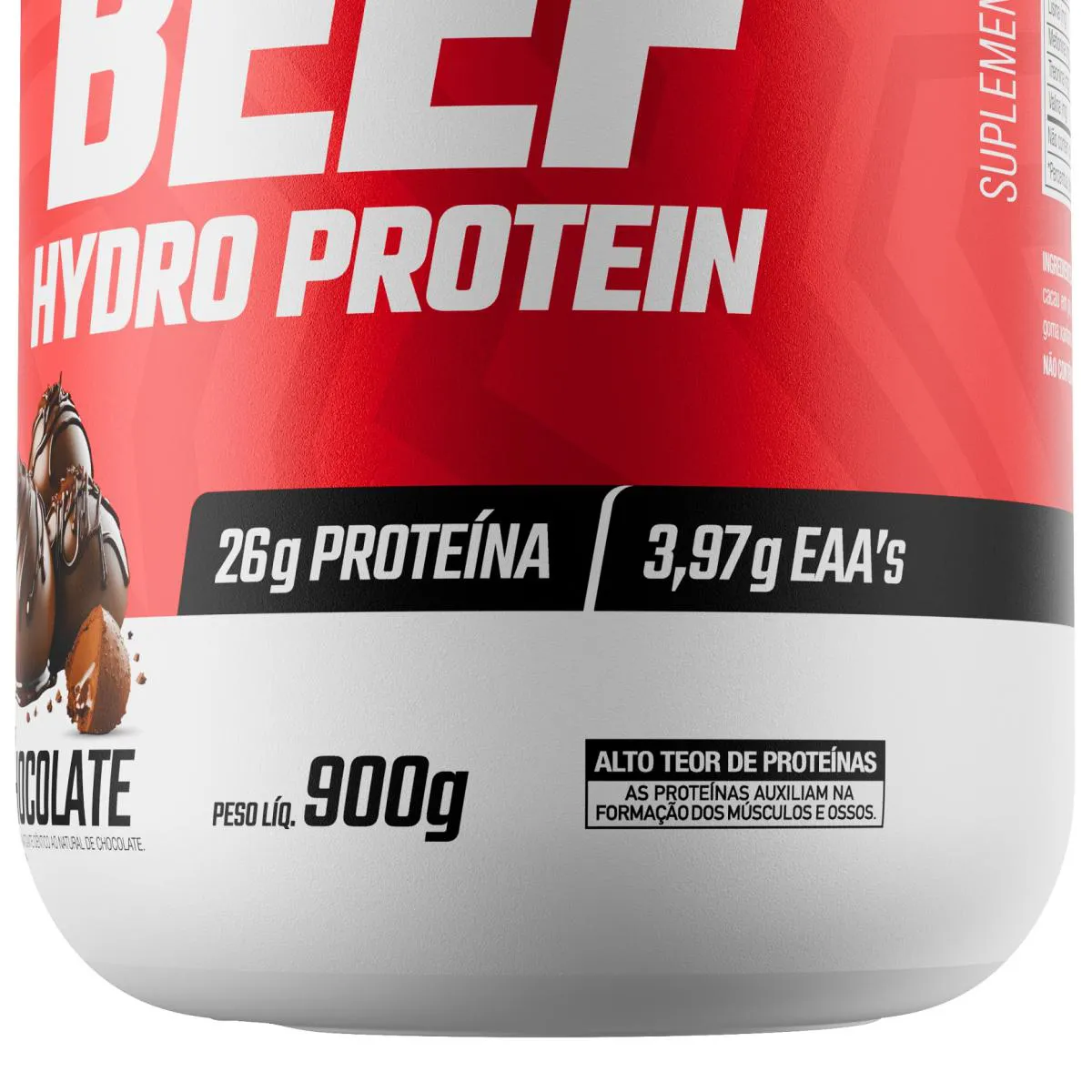 O Beef Hydro Protein é um suplemento alimentar em pó produzido com proteína hidrolisada de carne bovina, com sabor de chocolate. Sua composição inclui proteína de rápida absorção e alto valor biológico, elaborado com ingredientes como proteína hidrolisada, colágeno, cacau em pó e edulcorantes. O produto não contém glúten e lactose.