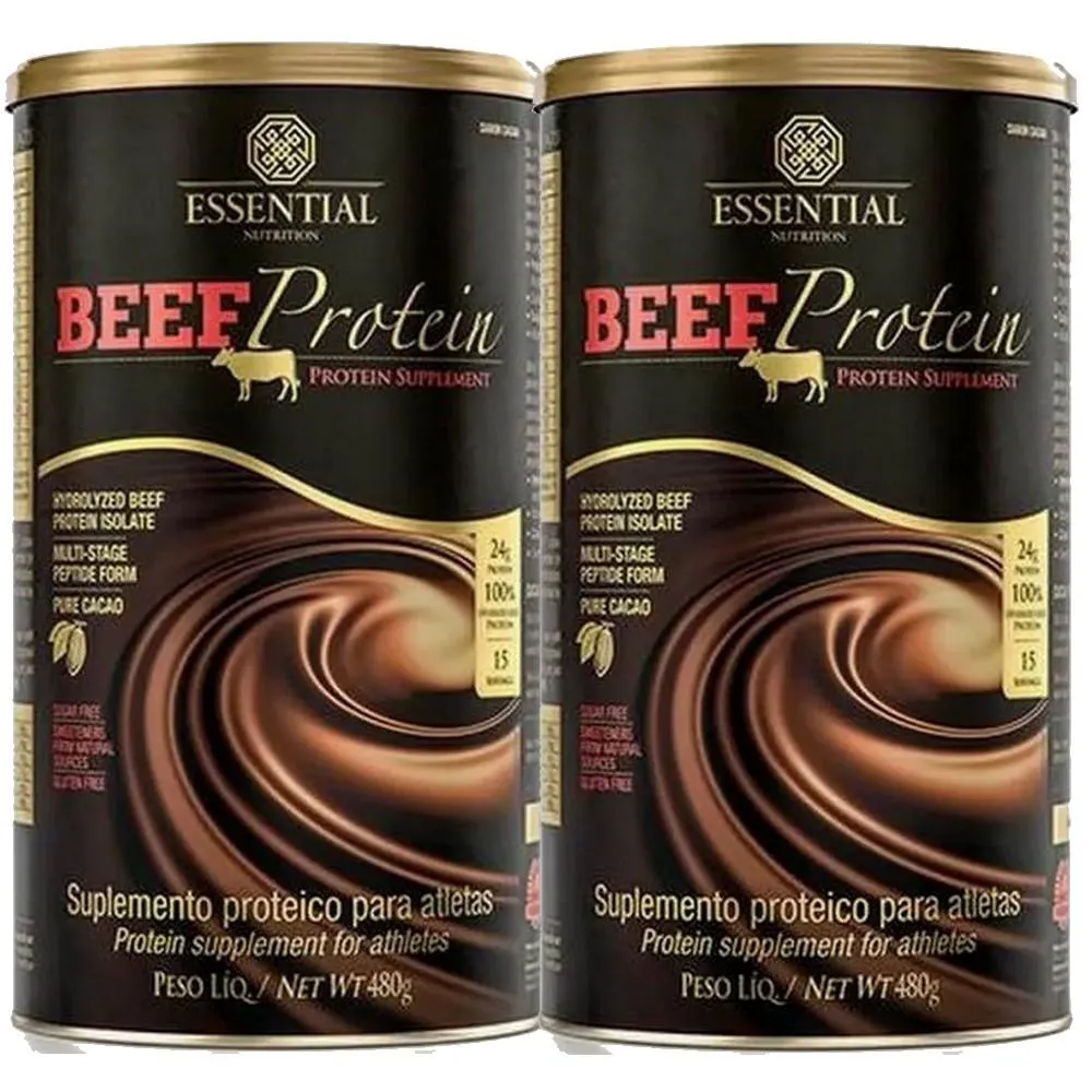 Beef Protein Cacau Essential Nutrition - Proteína Isolada E Hidrolisada - Kit 2X 480G Cada