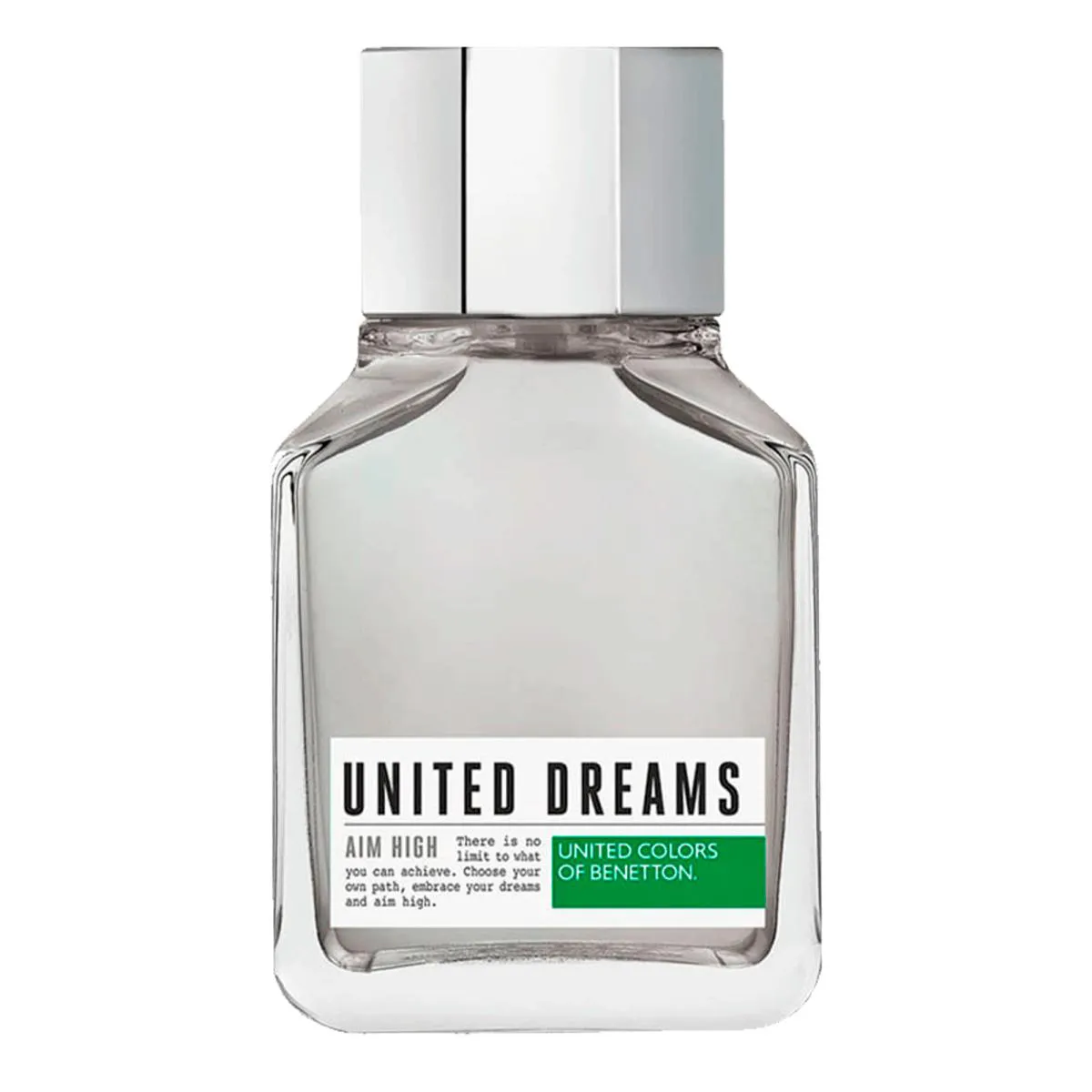 O Benetton United Dreams Aim High Eau de Toilette é uma fragrância amadeirada aromática lançada em 2015, parte da coleção United Dreams Men, que inspira homens a perseguirem seus sonhos com determinação. Criada para o homem aventureiro, confiante e sonhador, ela combina frescor cítrico com notas herbais e um fundo amadeirado, evocando energia, coragem e sensualidade. Ideal para o dia a dia, trabalho, academia ou ocasiões casuais, especialmente em climas quentes, oferece um aroma limpo e refrescante, remetendo à sensação de frescor pós-banho.