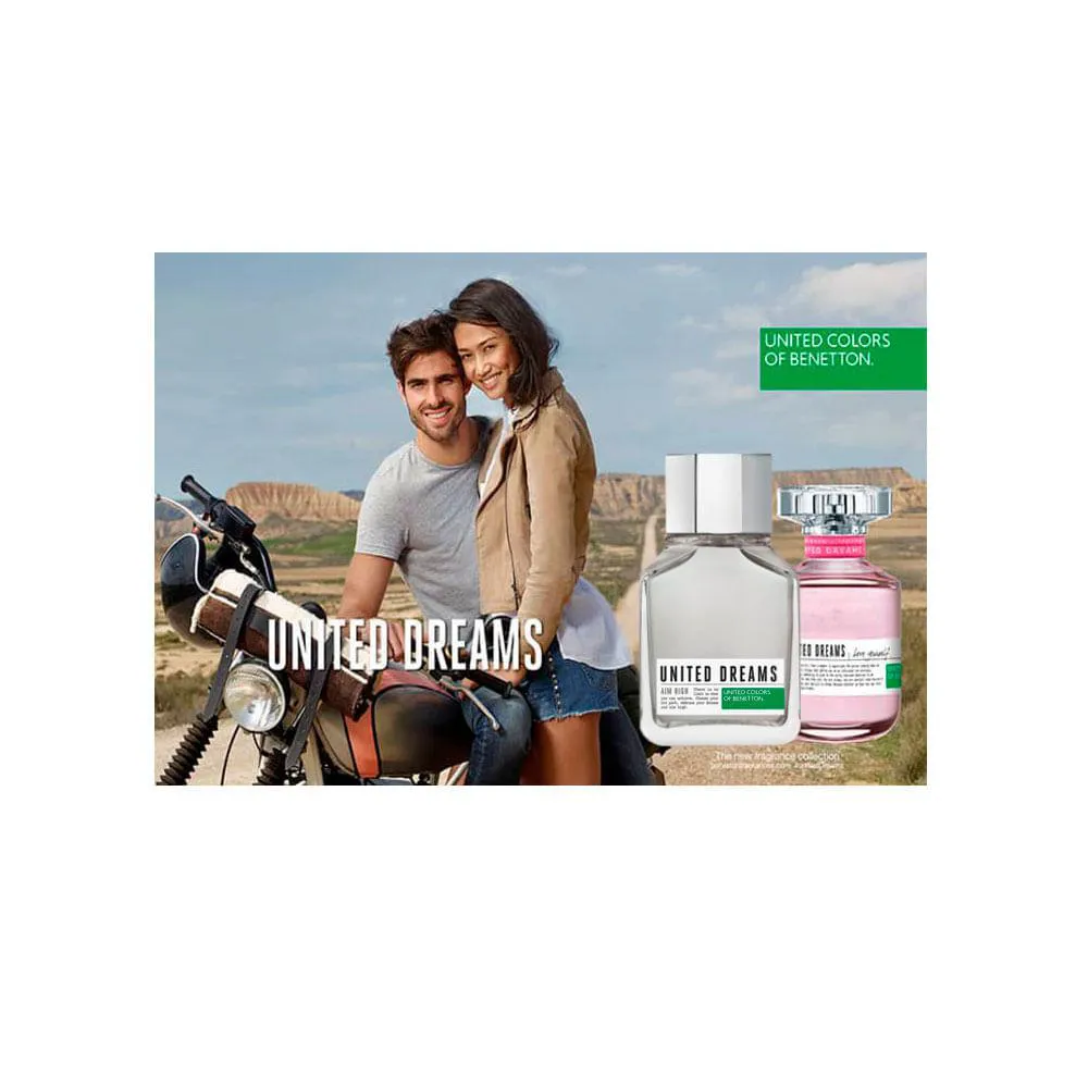 O Benetton United Dreams Aim High Eau de Toilette é uma fragrância amadeirada aromática lançada em 2015, parte da coleção United Dreams Men, que inspira homens a perseguirem seus sonhos com determinação. Criada para o homem aventureiro, confiante e sonhador, ela combina frescor cítrico com notas herbais e um fundo amadeirado, evocando energia, coragem e sensualidade. Ideal para o dia a dia, trabalho, academia ou ocasiões casuais, especialmente em climas quentes, oferece um aroma limpo e refrescante, remetendo à sensação de frescor pós-banho.
