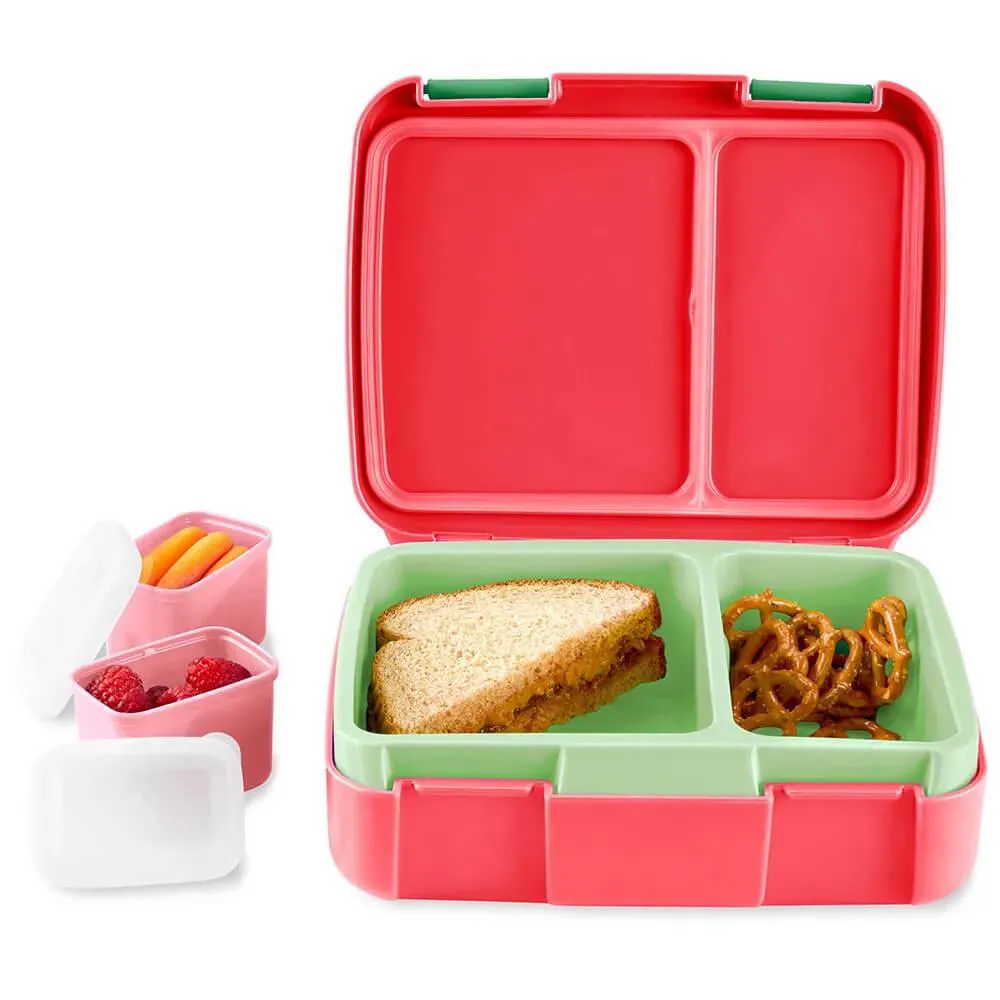 Lancheira Bento Spark Style - Skip HopBRBRApresentamos a Lancheira Bento Spark Style, a companheira perfeita para as refeições das crianças, especialmente projetada para embalar porções perfeitas e manter tudo organizado. Com seu design resistente e encantador, esta lancheira é ideal até para os pequenos mais exigentes, garantindo que cada refeição seja uma aventura saborosa e divertida.BRBRCaracterísticas:BR• Bandeja Interna Removível: Dividida em compartimentos para separar os diferentes tipos de alimentos, facilitando uma alimentação equilibrada.BR• Recipientes com Tampas: Acompanham a lancheira para porções adicionais ou snacks, todos com vedação segura que minimiza bagunças.BR• Travas Amigáveis para Crianças: Fáceis de abrir e fechar, permitindo que as crianças manuseiem sua lancheira de forma independente.BR• Alça de Transporte Flexível: Facilita o transporte pela criança ou pendura na mochila.BR• Idade Indicativa: Recomendada para crianças a partir de 3 anos.BR• Material: Livre de BPA, garantindo segurança e saúde para as crianças.BR• Medidas: 21,33 cm x 6,65 cm x 17,42 cm.BR• Fácil Limpeza: Totalmente lavável na lava-louças (parte superior), simplificando o dia a dia dos pais.BR• Manuseio: Não é adequado para uso no micro-ondas; evitar ferver.BR• Anel de Silicone Removível: Pode ser retirado para uma limpeza mais detalhada quando necessário.BRBRA Lancheira Bento Spark Style da Skip Hop não é apenas uma solução para o almoço, mas uma verdadeira experiência de estilo e praticidade para as crianças. Com esta lancheira, cada refeição se transforma em um momento de alegria e independência, enquanto os pais ficam tranquilos com a facilidade de limpeza e a durabilidade do produto. Confira toda a coleção Spark Style e descubra como tornar cada dia mais especial e organizado!