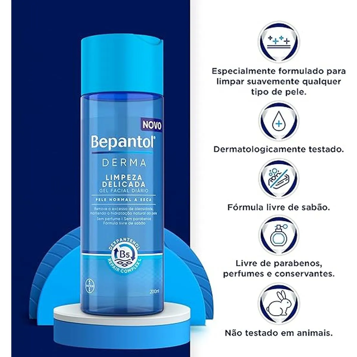Bepantol Derma Limpeza Delicada – Gel Facial Diário 200 ml O Gel Facial de Limpeza Delicada da linha Bepantol Derma foi formulado para remover impurezas, oleosidade e maquiagem leve com suavidade, preservando a hidratação natural da pele. Ideal para uso diário, deixa a pele limpa, macia e confortável, sem sensações de ressecamento. Características: