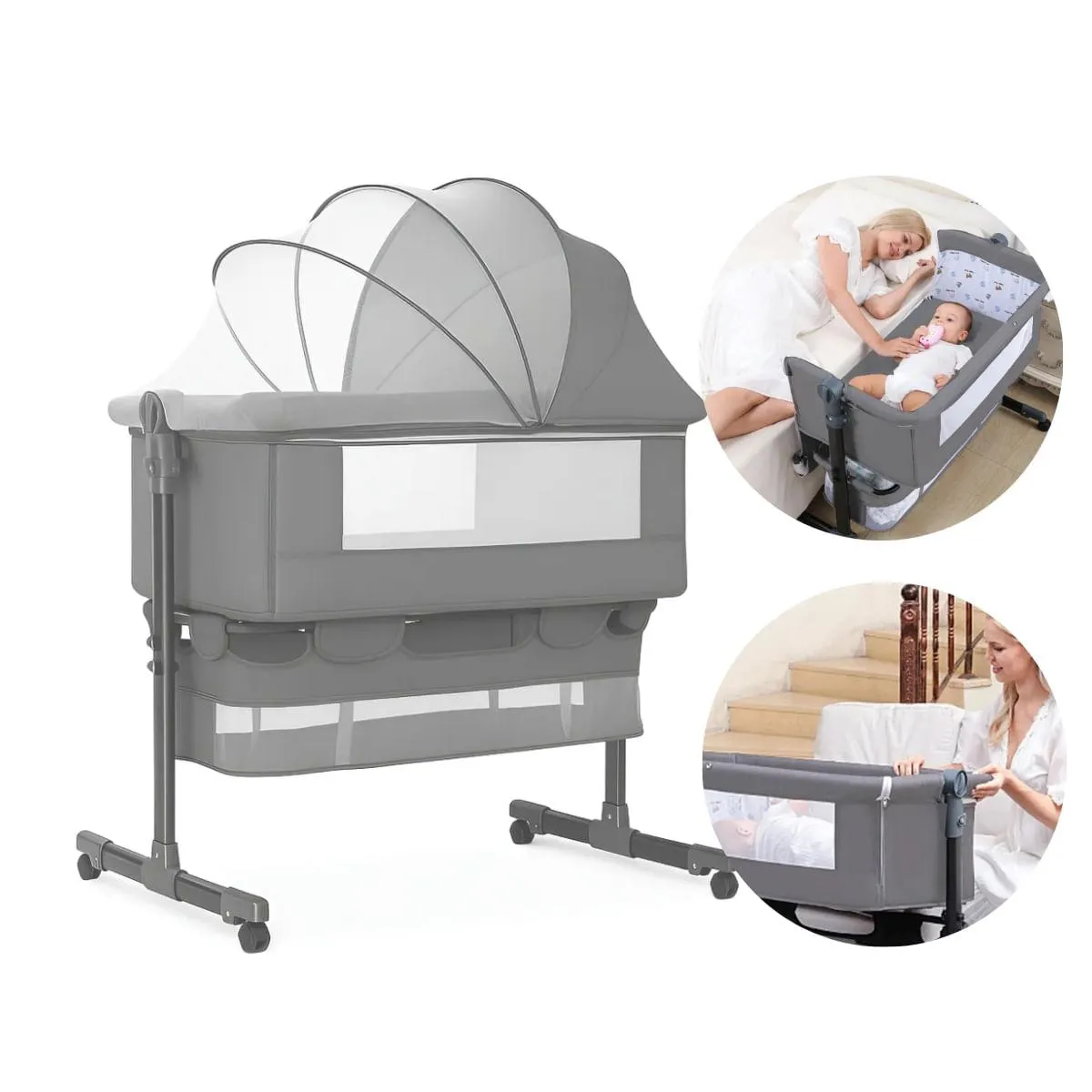 Berço Portátil Bebê Acoplado Co-Bed Connect Maxi Baby Cinza