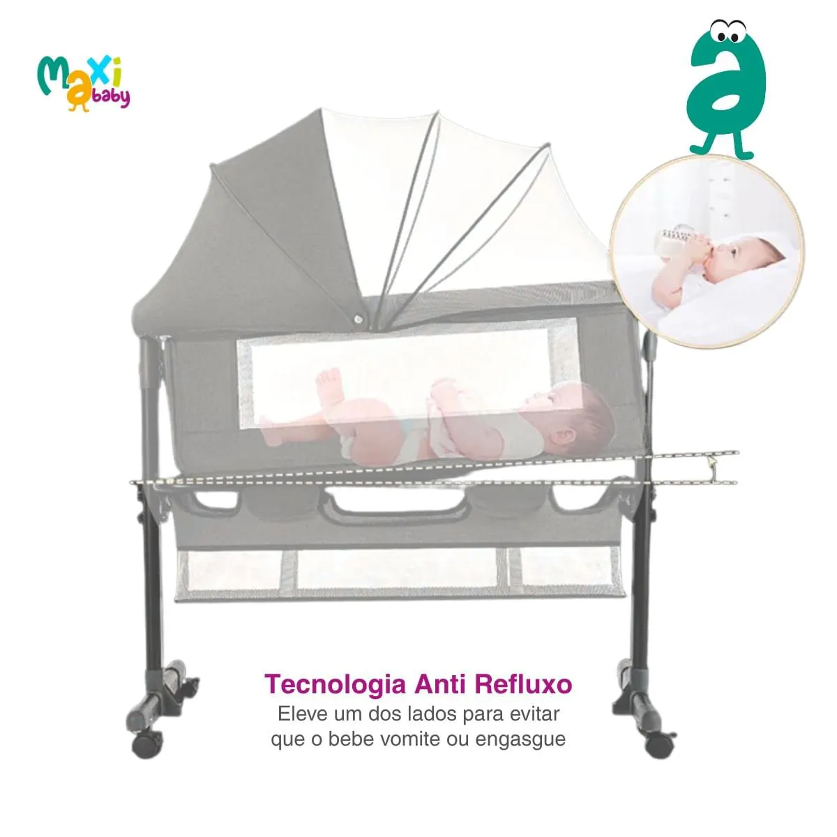 - Função Anti-Refluxo: Eleve um dos lados para evitar que o bebe vomite ou engasgue