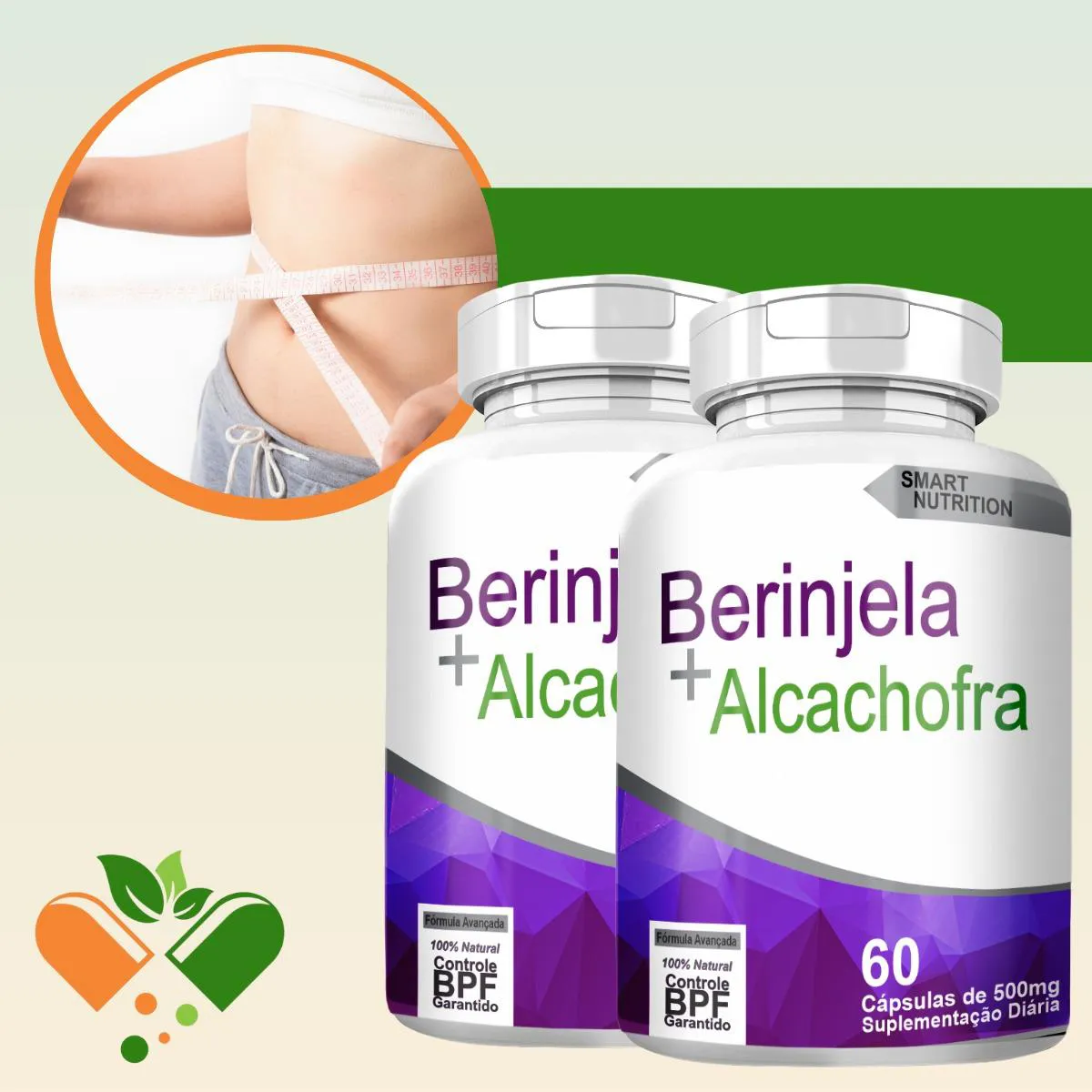 Berinjela com Alcachofra Kit com 2 Potes com Total de 120 Capsulas