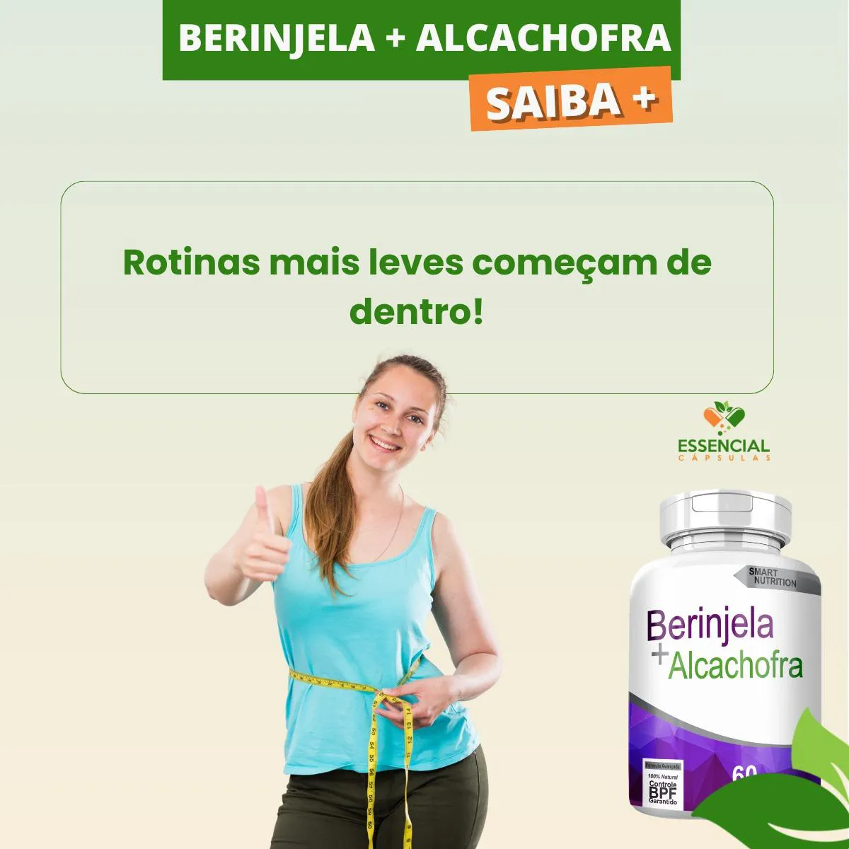 BEM VINDO(A) À ESSENCIAL CÁPSULAS Aqui, acreditamos que cuidar da saúde pode (e deve) ser algo natural, leve e diário. PRODUTO: - Berinjela com Alcachofra 60 Cápsulas MARCA: - 4Elementos BENEFÍCIOS: ● Utilizada em rotinas que buscam leveza e equilíbrio alimentar ● Opção natural para o conforto digestivo no dia a dia SUGESTÃO DE CONSUMO (PELO FABRICANTE): - 01 Cápsula, de uma a três vezes ao dia - Ingerir com 200ml de água IMPORTANTE SABER: - Este produto é um suplemento alimentar natural. - Não é medicamento e não substitui uma alimentação equilibrada nem o acompanhamento de um profissional da saúde. - Como um produto natural, seus benefícios podem ser vistos a partir de alguns dias do uso. - Os suplementos são destinados a pessoas saudáveis. Sua finalidade é fornecer nutrientes, substâncias bioativas, enzimas ou probióticos em complemento à alimentação. COMPOSIÇÃO: - BERINJELA E ALCACHOFRA EM PÓ. NÃO CONTÉM GLÚTEN CONTRAINDICAÇÃO: - O uso não é recomendado para gestantes, lactantes e crianças. - Em caso de uso contínuo de medicamentos ou condições específicas de saúde, busque a orientação de um profissional da saúde. QUALIDADE: - Sabemos que o mercado de suplementos é competitivo, com opções para todos os públicos e faixas de preço. Na nossa loja, priorizamos a qualidade em cada detalhe. Por isso, escolhemos trabalhar apenas com fábricas que utilizam matérias-primas de excelência e seguem rigorosos padrões de produção. ENVIAMOS RAPIDINHO: - Seu pedido é preparado com todo cuidado e postado em até 24 horas úteis após a confirmação da compra. (Na maioria das vezes, enviamos bem antes disso)! FALE CONOSCO: Tem dúvidas ou quer conversar sobre o produto? Nosso atendimento é humanizado e está sempre pronto para te ouvir com muita atenção!