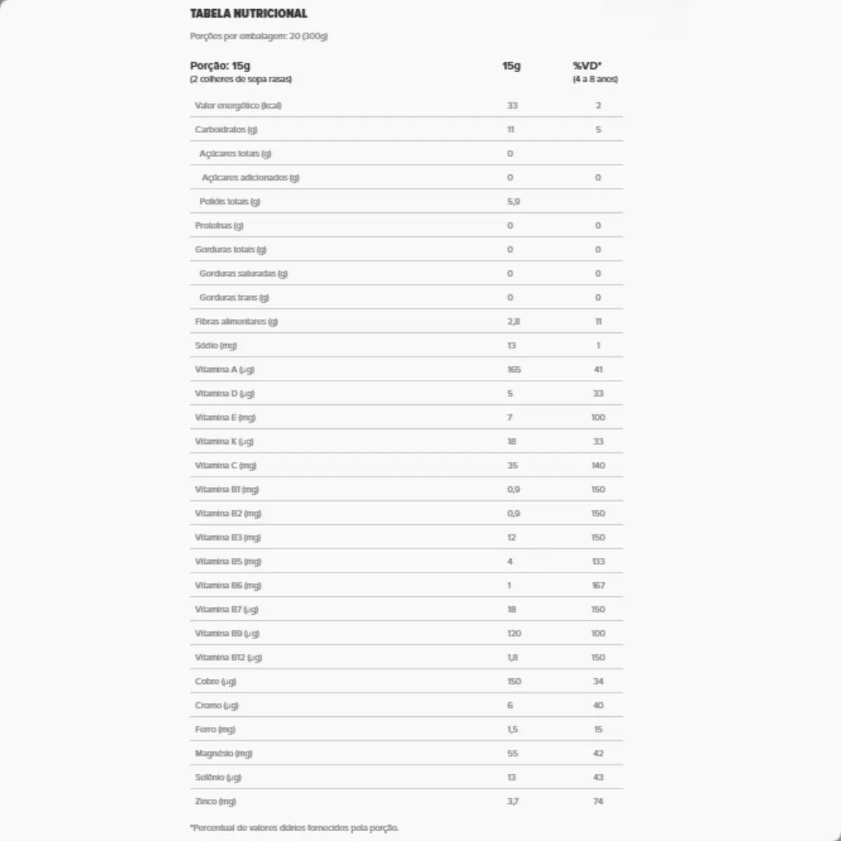 - Livre de açúcar, glúten, lactose e corantes.