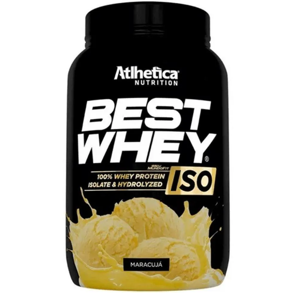 Best Whey Iso (900g) - Atlhetica Nutrition. BEST WHEY ISO da Atlhetica mantém o já conhecido e delicioso sabor do Best Whey, entretanto, por ser 100% Isolado e Hidrolisado, possui as duas melhores fontes whey protein que existem, com 20g de proteína por dose, em torno de 1g de carboidrato e menos de 60mg de sódio. Best Whey Iso é um suplemento que veio para ser definitivamente sua opção de Whey Protein Isolado e hidrolisado com sabor de Milk Shake! - PROTEÍNA HIDROLISADA: Na Whey Protein Hidrolisada as cadeias de proteínas são quebradas em menores segmentos chamados peptídeos, fazendo com que o organismo absorva mais rápido as proteínas e aminoácidos. A Whey Hidrolisada fornece proteínas de alta qualidade e há menor possibilidade de reações alérgicas do que a versão não hidrolisada. - PROTEÍNA ISOLADA: O Processo de obtenção do Whey Protein isolate conta com uma sofisticada técnica de filtração por troca iônica, que quebra a estrutura das proteínas, deixando-o praticamente isento de gordura, lactose e colesterol. O produto acabado contém cerca de 90% de proteína. Contando com uma proteína pura e de rápida absorção. - POR QUE TOMAR A BEST WHEY ISO? A Best Whey Iso é formulada com Proteína Isolada e Hidrolisada do Soro do Leite, possui alta concentração proteica e baixo sódio. Disponível em deliciosos sabores desenvolvidos com 20g de proteína por porção. BENEFÍCIOS: * 9 deliciosos sabores: Abacaxi, Baunilha, Brigadeiro, Doce de leite, Maracujá, Morango, Napolitano, de Mel e Mocaccino Canela;* Fonte Proteica: WPI + WPH;* 20g de Proteína por porção;* Porção de 24g.