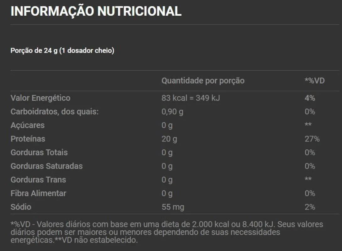 - Whey 100% isolado e hidrolisado de alta qualidade.