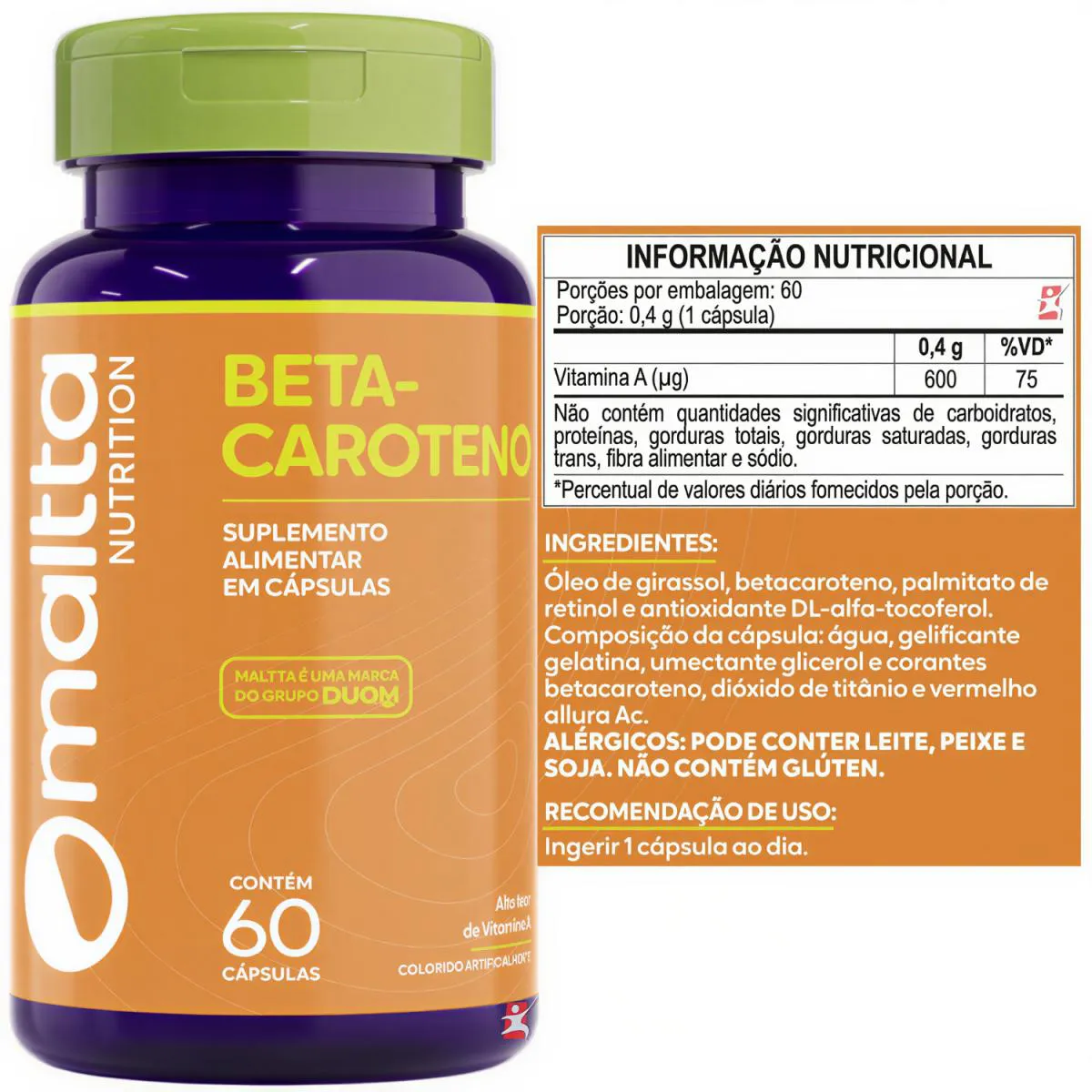 Betacaroteno Alto Teor de Vitamina a 1 ao Dia 60 Cápsulas Softgel - Maltta Nutrition