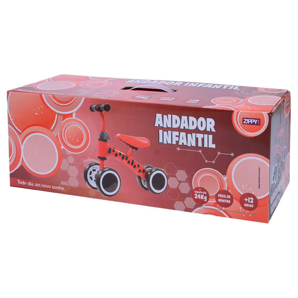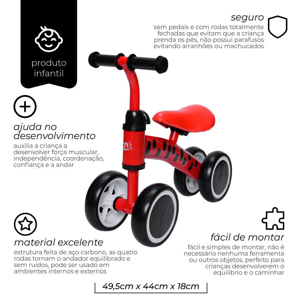 Bicicleta Andador de Equilíbrio infantil Sem Pedal 4 Rodas Vermelho Zippy Toys