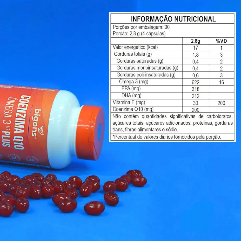 Coenzima Q10 200mg + Ômega 3 Tg Plus Vit e 120 Cápsulas Bigens