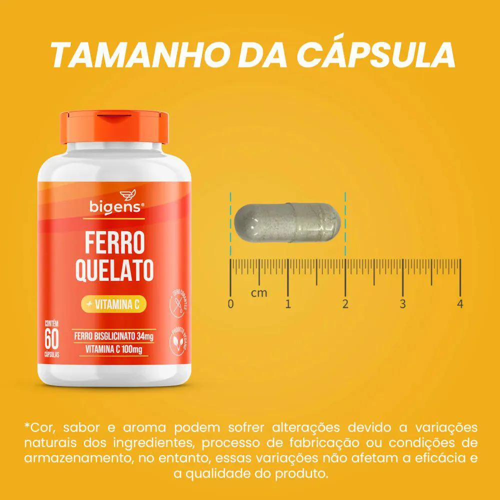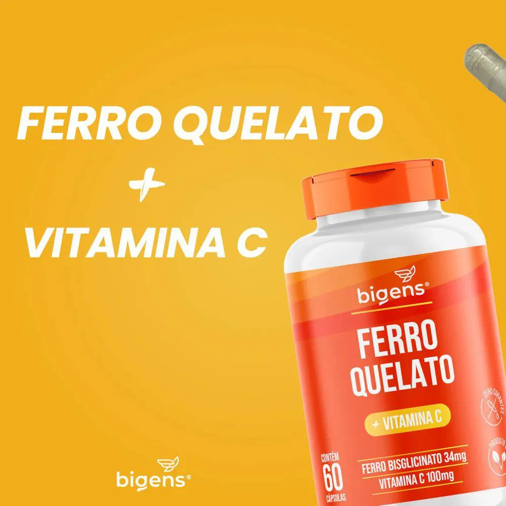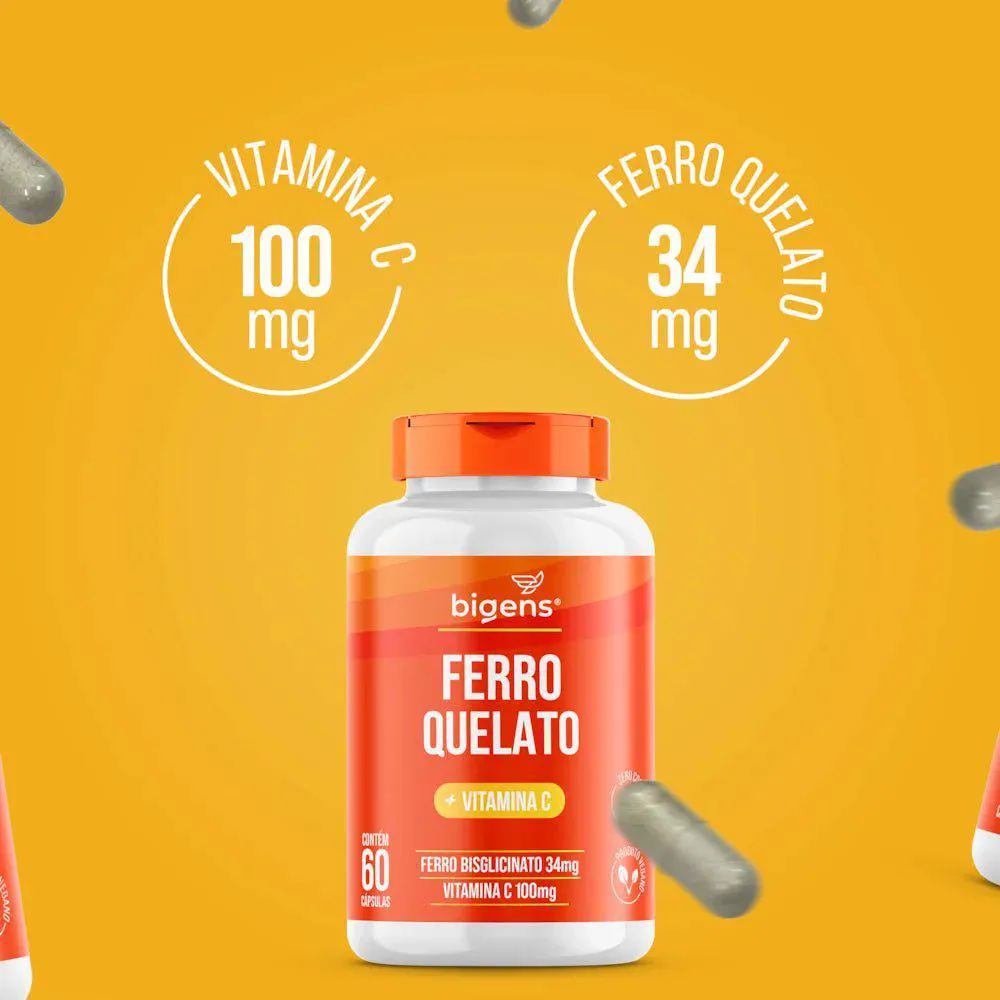 Ferro Quelato 34mg + Vitamina C 100mg ( Por Cápsula ) | 60 Cápsulas | Vegano | Bigens