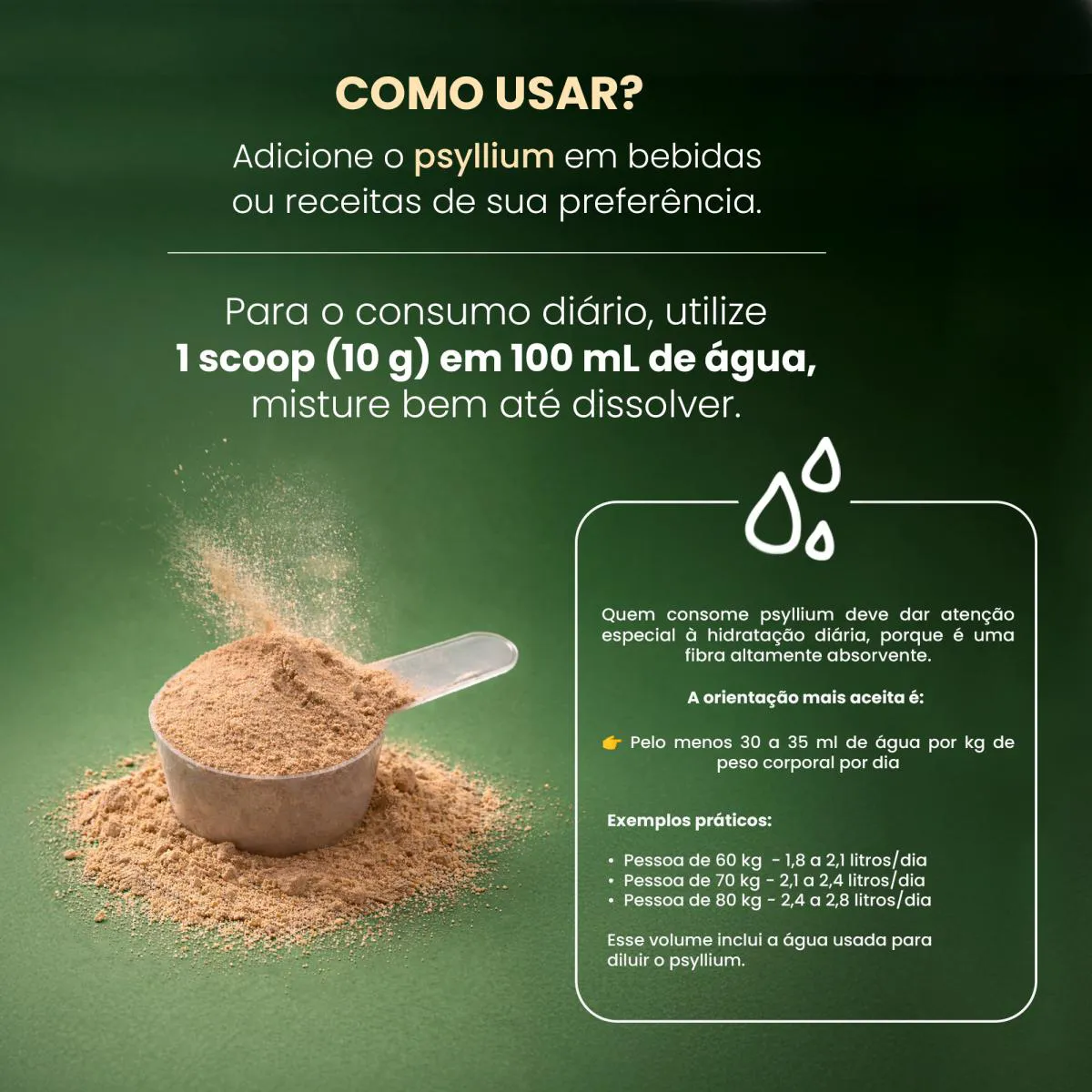 Se você busca mais saciedade ao longo do dia e uma rotina alimentar mais equilibrada, o Psyllium Premium Bigens pode ser um excelente aliado. Cada porção fornece 10 g de psyllium, uma fibra solúvel que, ao entrar em contato com a água, forma um gel natural, contribuindo para a sensação de saciedade dentro de uma alimentação equilibrada.